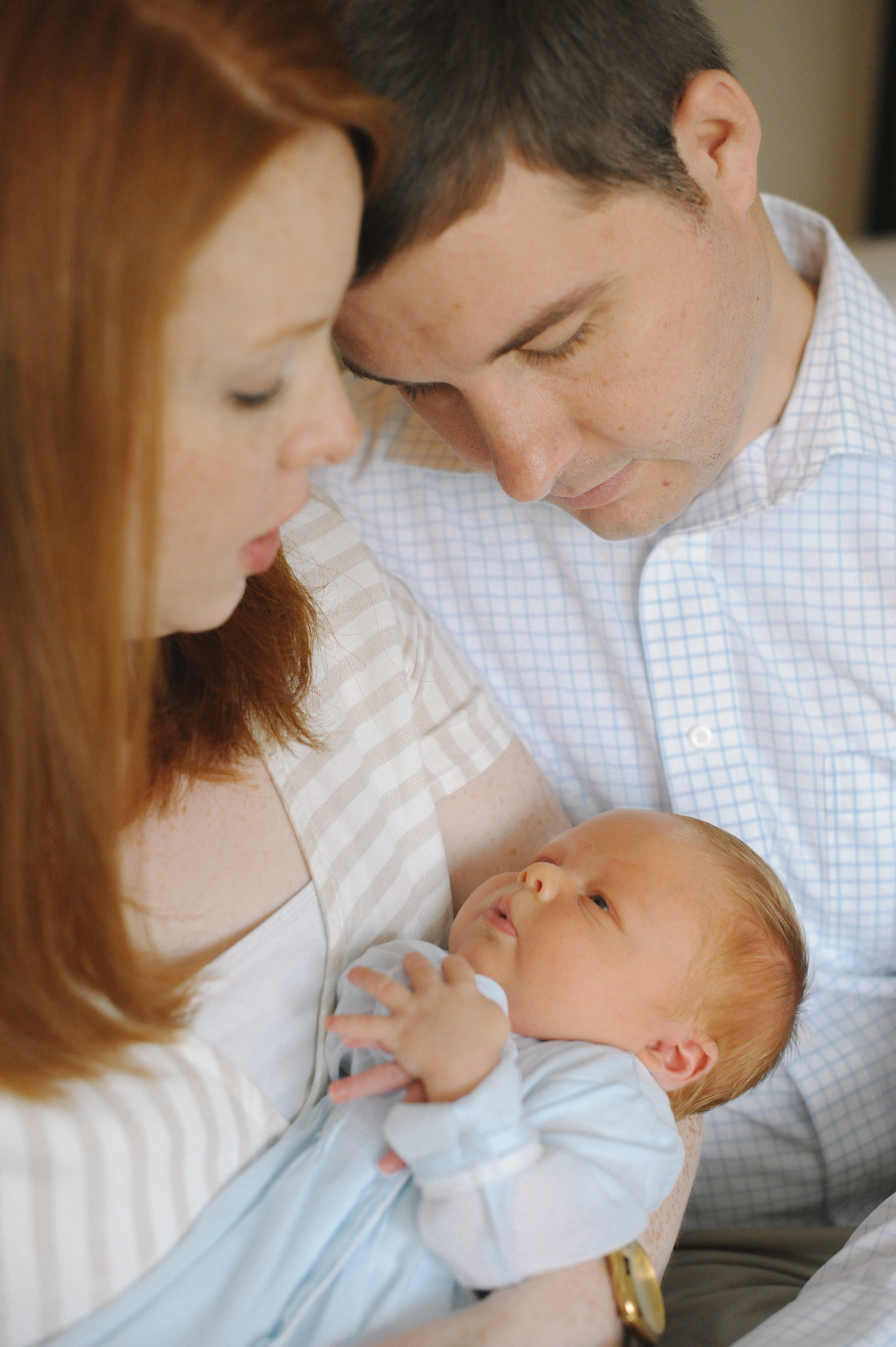 Painting of a family portrait: a man, woman, and baby.