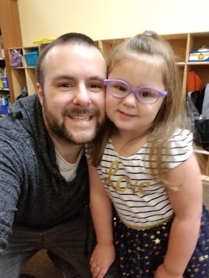 Painting of a man and baby girl.