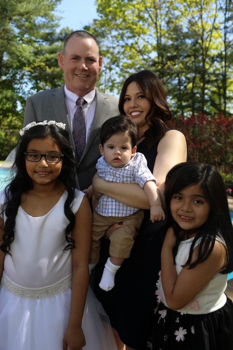 Family portrait, parents, baby, and two daughters.