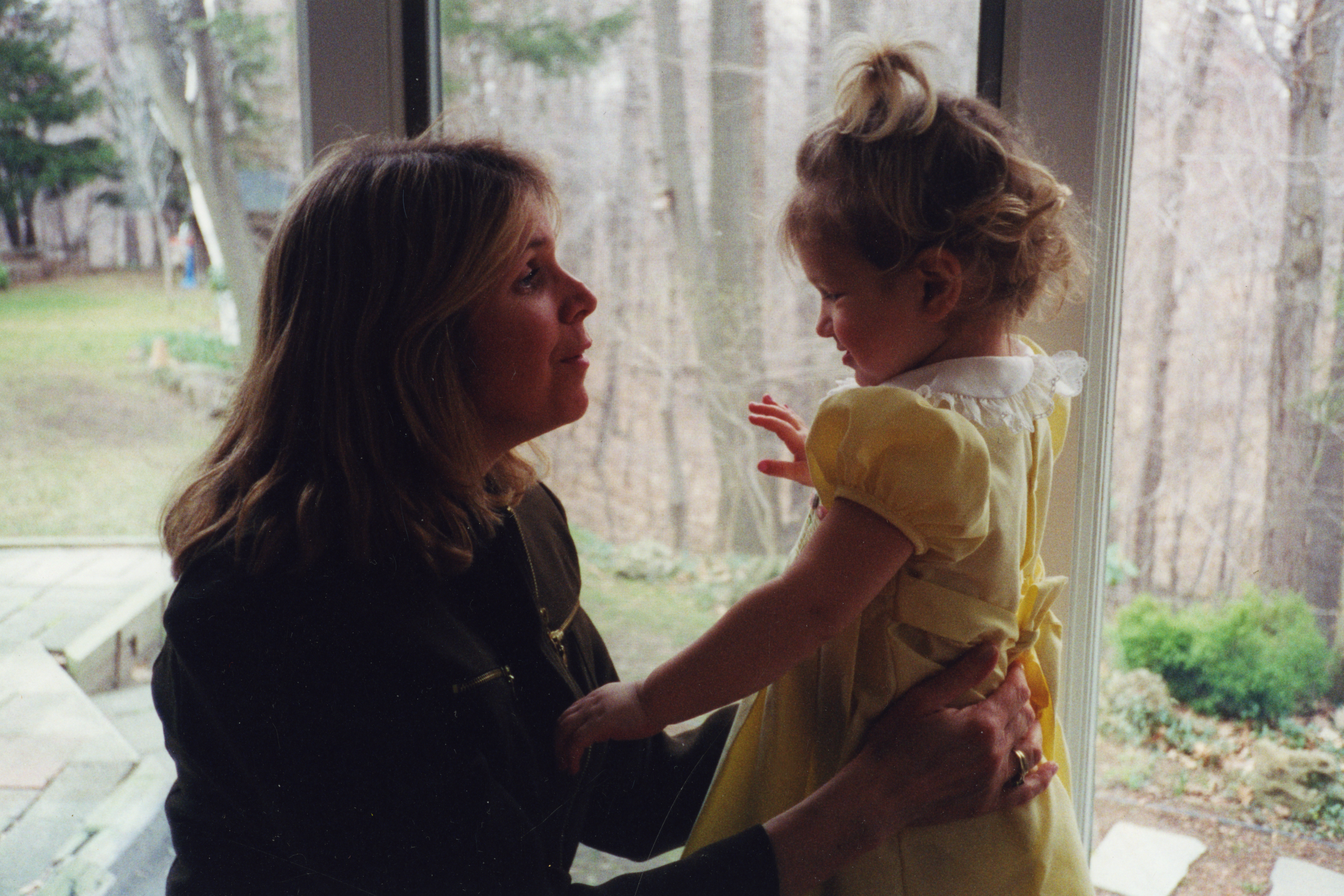 Painting of a mother and young daughter by a window.