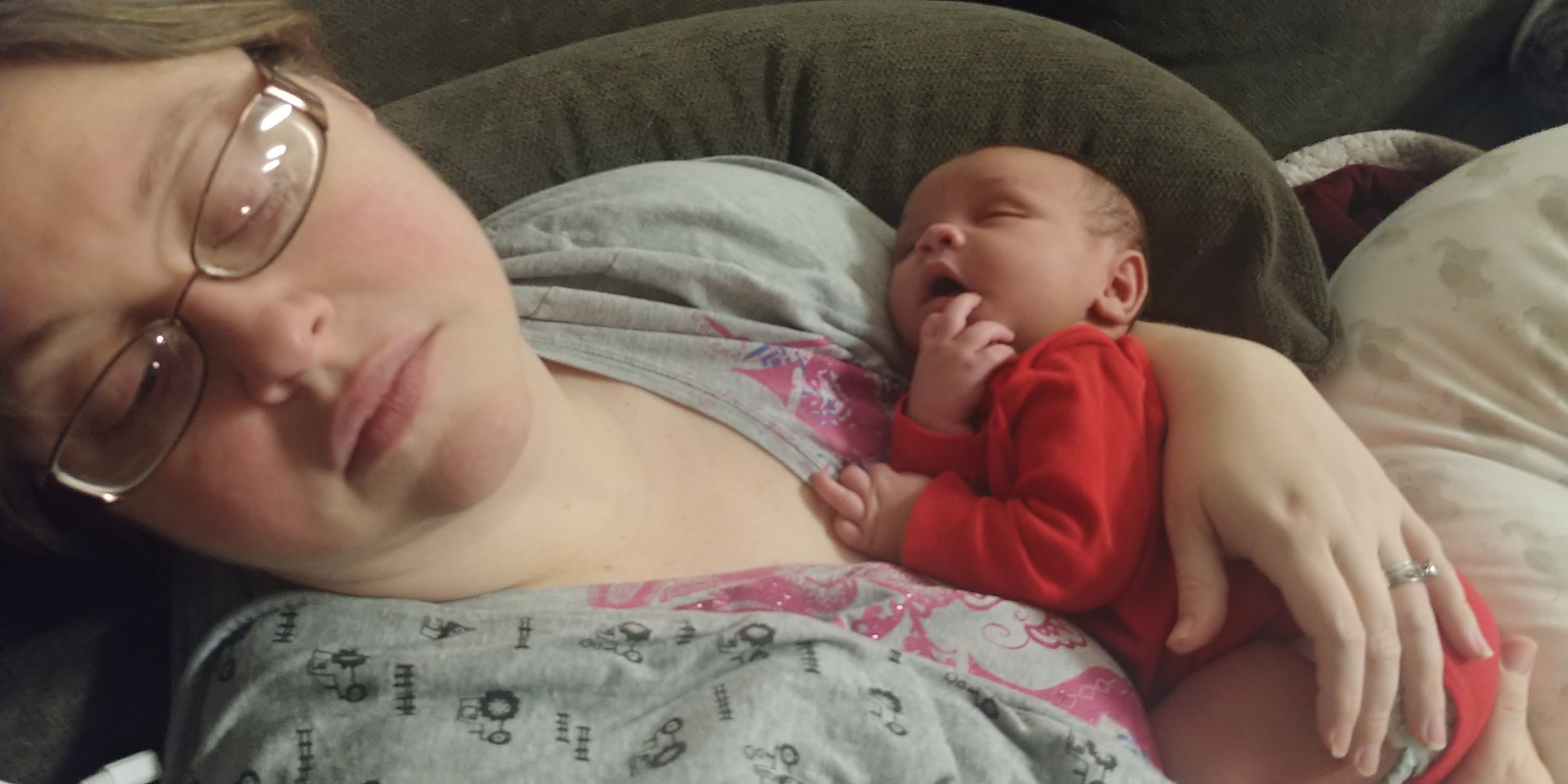 Painting of a sleeping mother holding her baby.