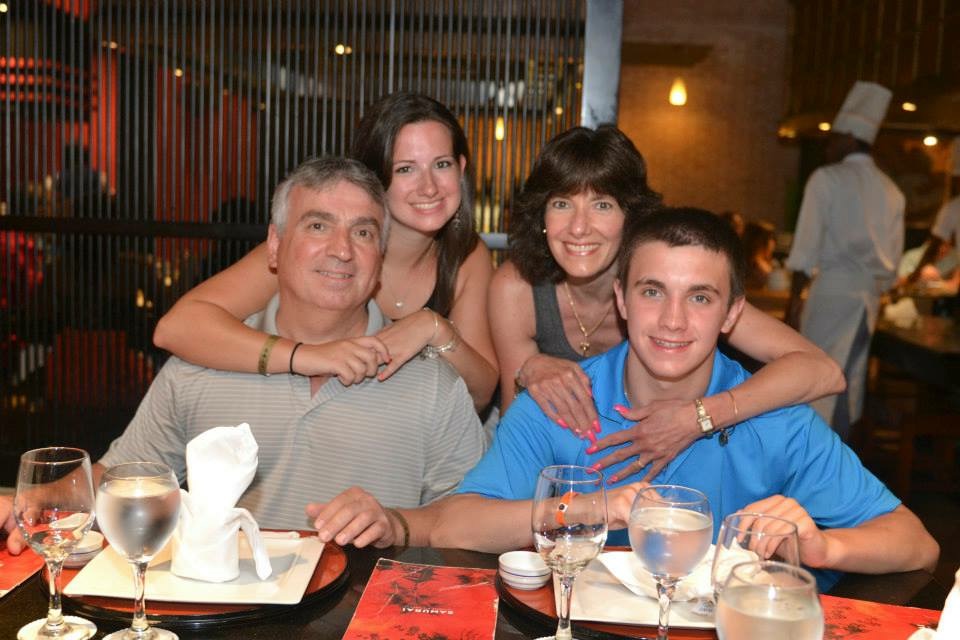 Family portrait painting, parents and two children.
