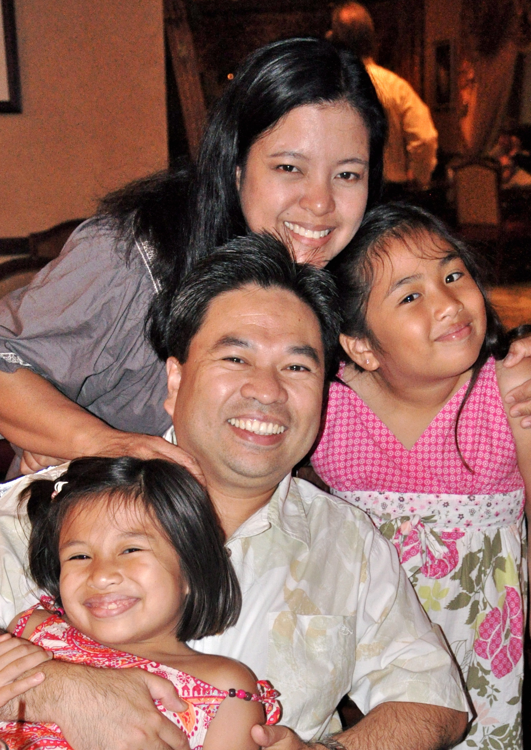 Oil painting portrait of a family: a man, woman, and two young girls.