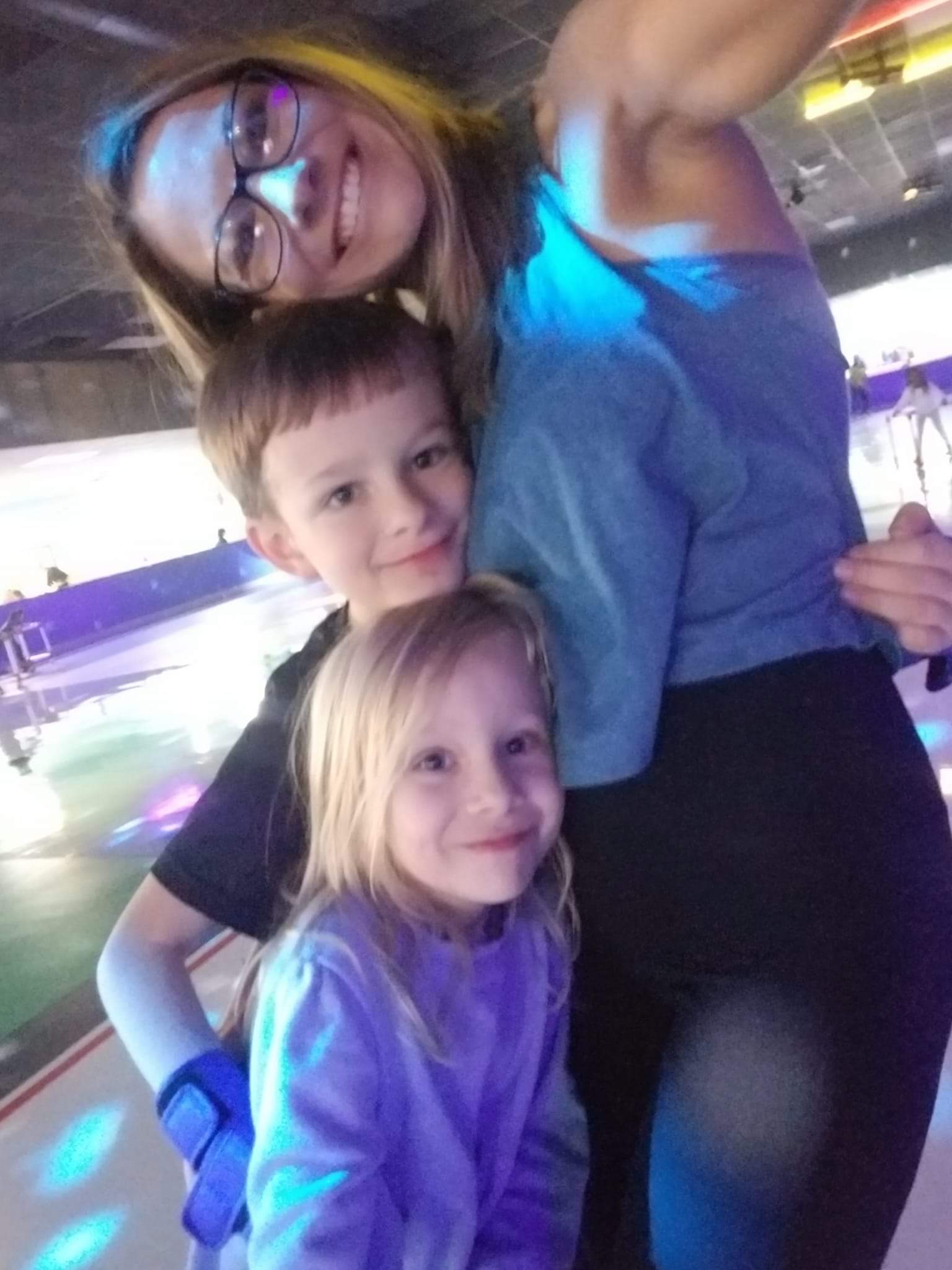 Colored pencil drawing of a mother and her two daughters in graduation gowns, holding champagne glasses.