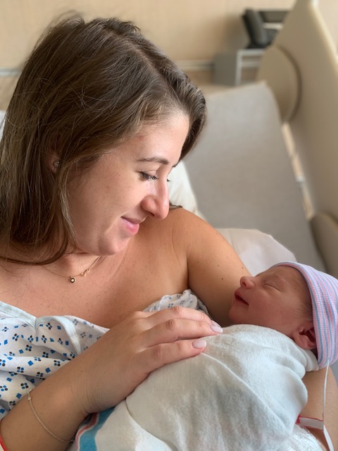 Painting of a mother lovingly holding her newborn baby.
