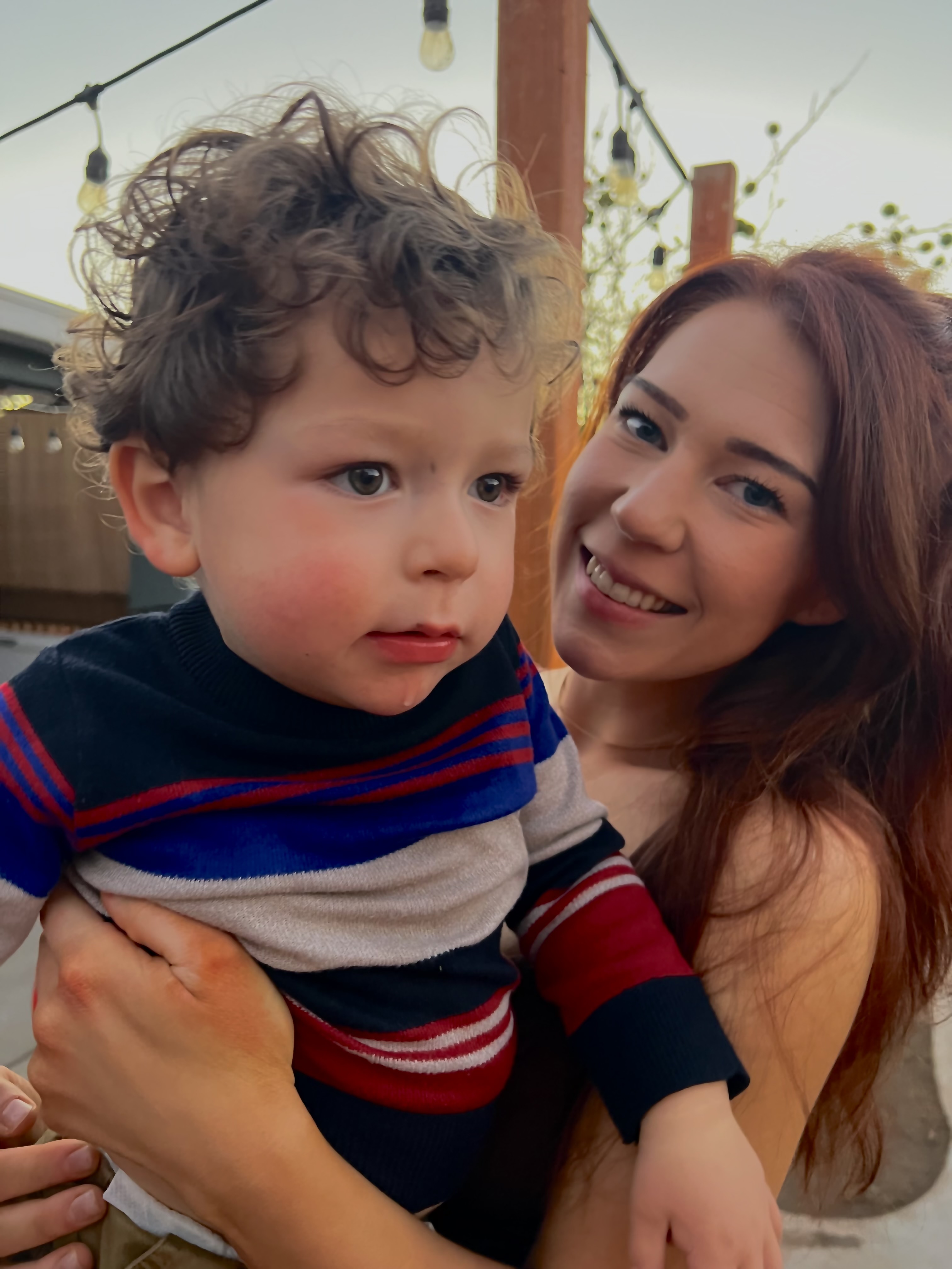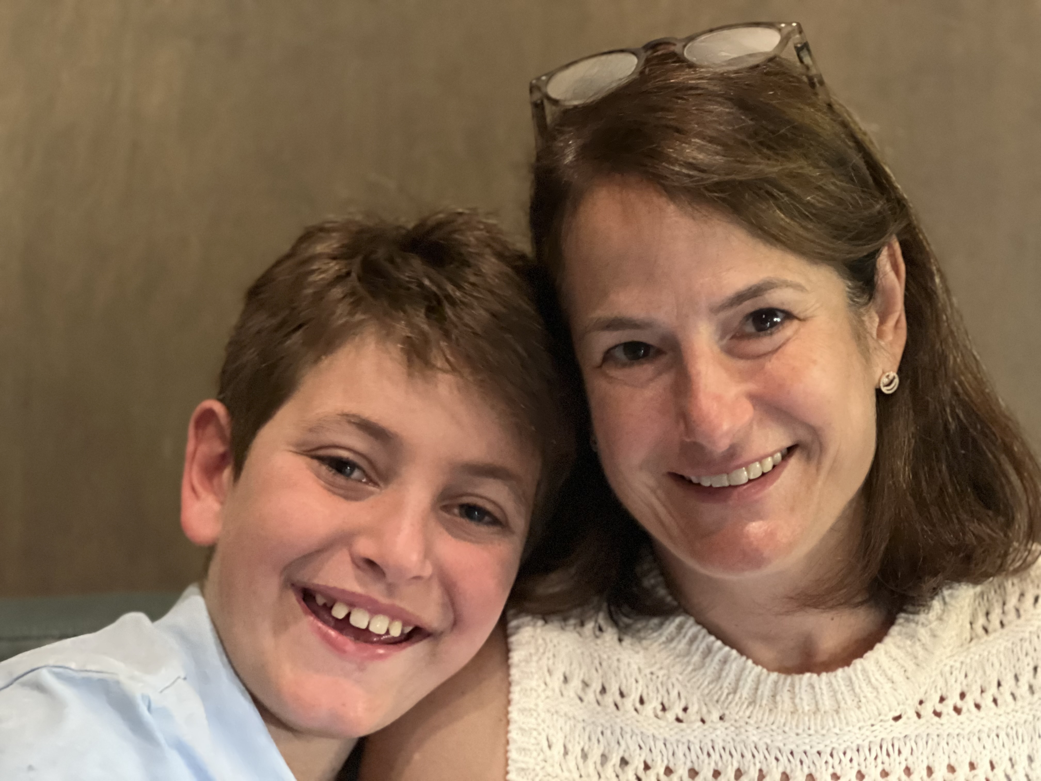 Oil painting of a smiling woman and boy.