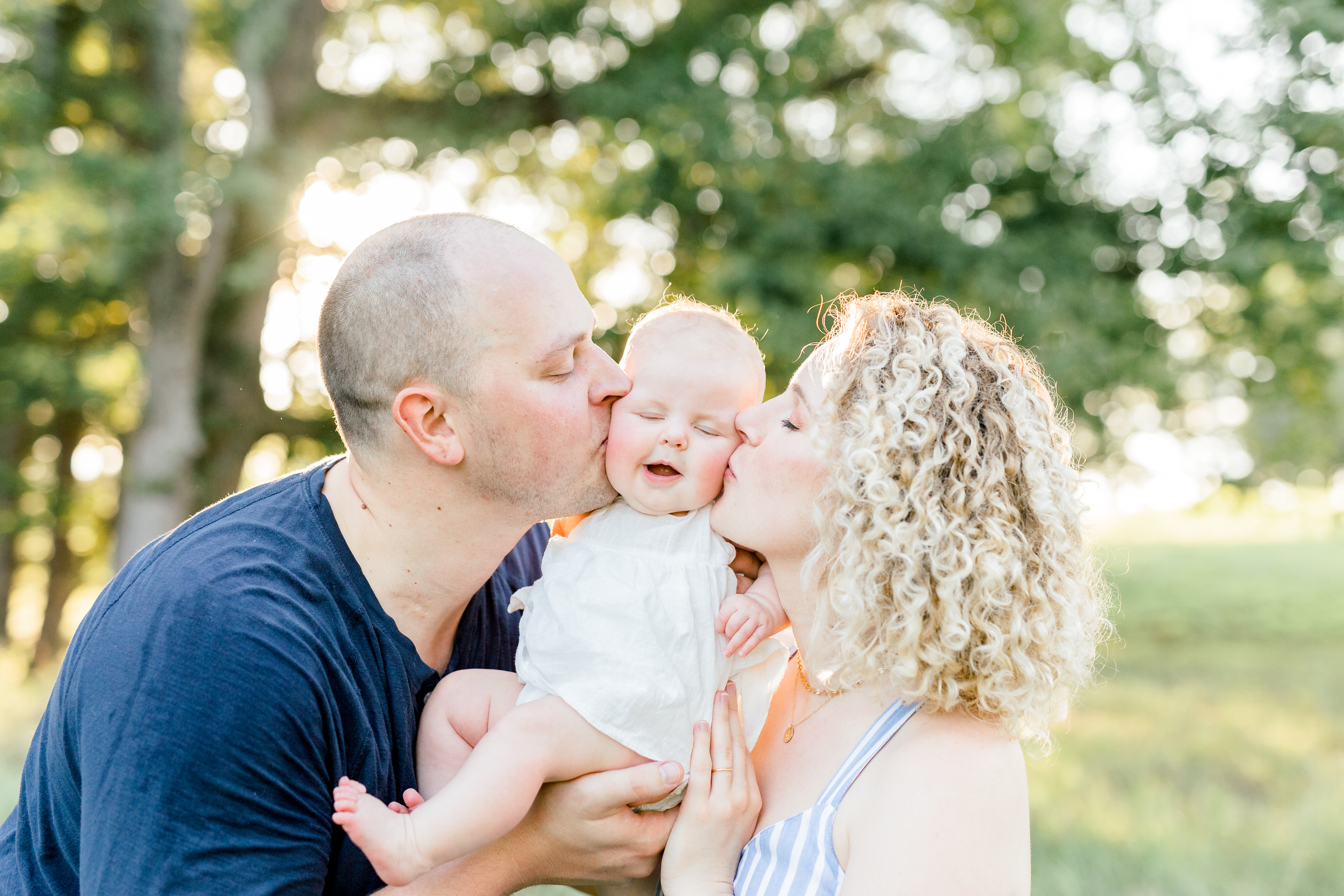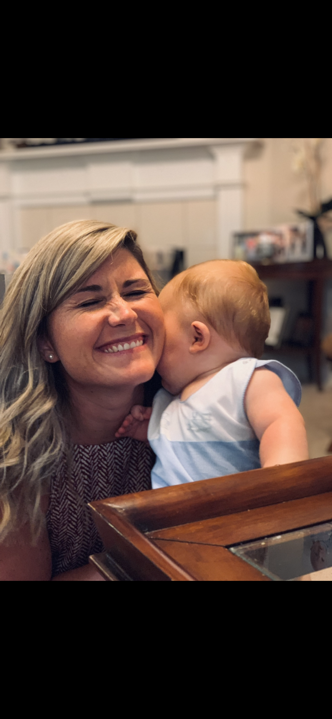 Painting of a smiling woman embracing a baby who is kissing her cheek