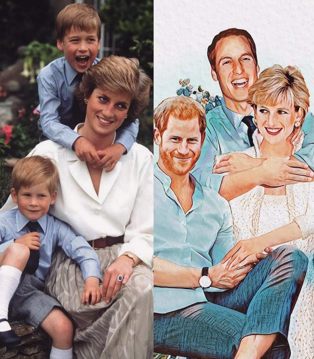 Painting of Princess Diana with Princes William and Harry