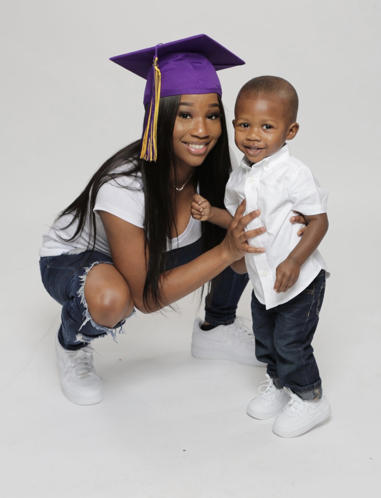 Black and white charcoal drawing of a mother kissing her sleeping baby.