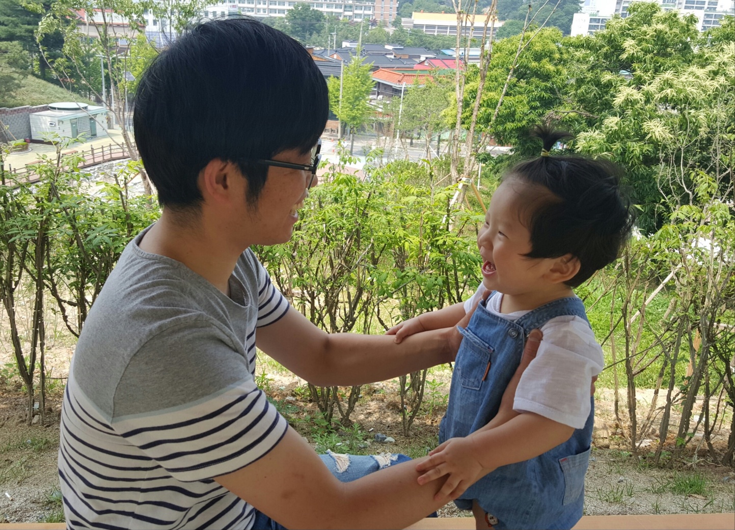 Painting of a person carrying a toddler on their shoulders.