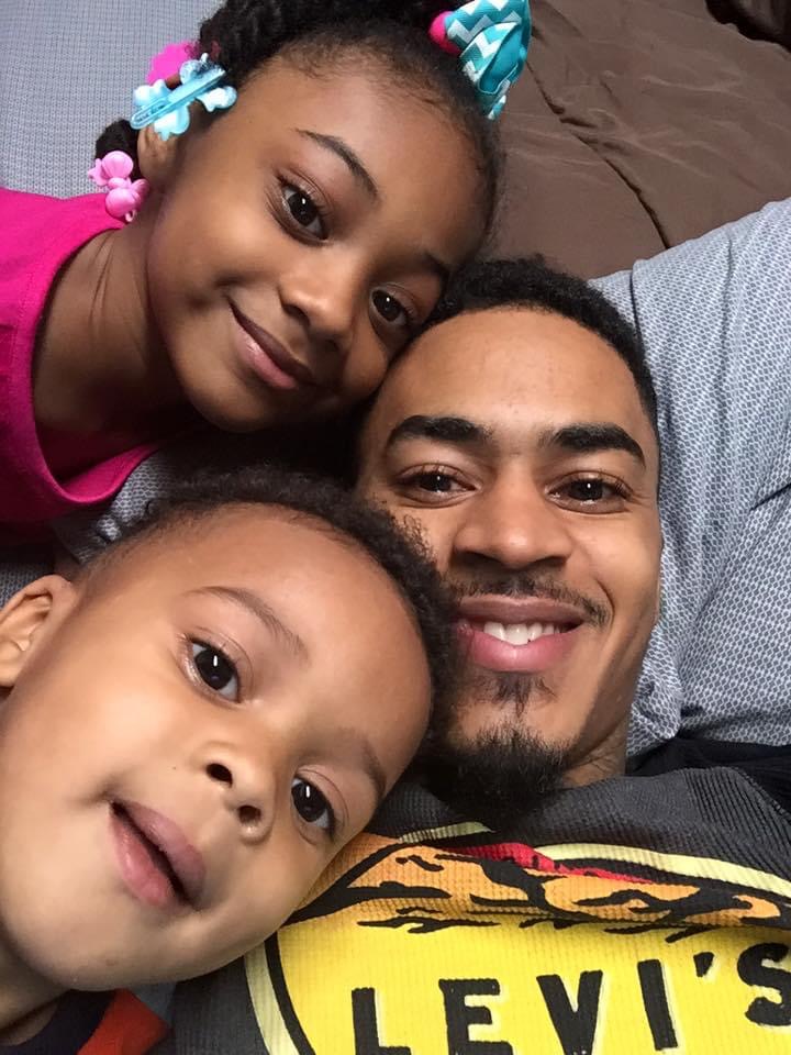 Painting of a father and his three children.