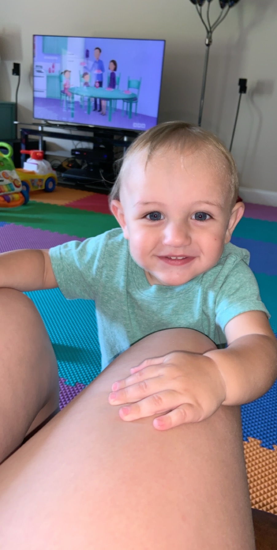 Oil painting portrait of a mother holding her toddler son.