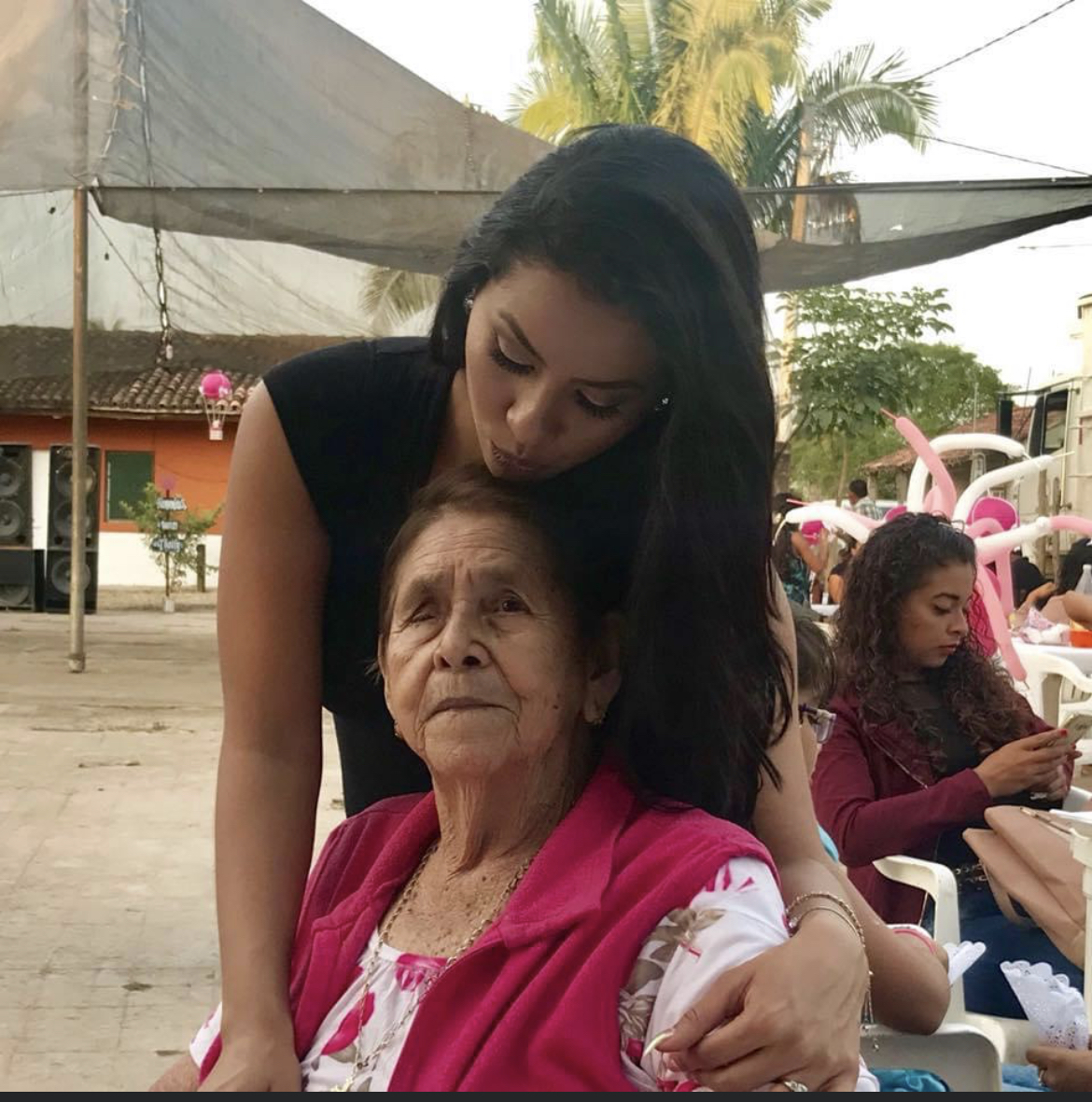 Colored pencil drawing of two women, one with blonde hair and a red shirt, the other with pink hair, wings, and a polka dot dress.