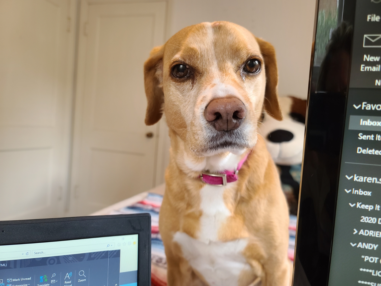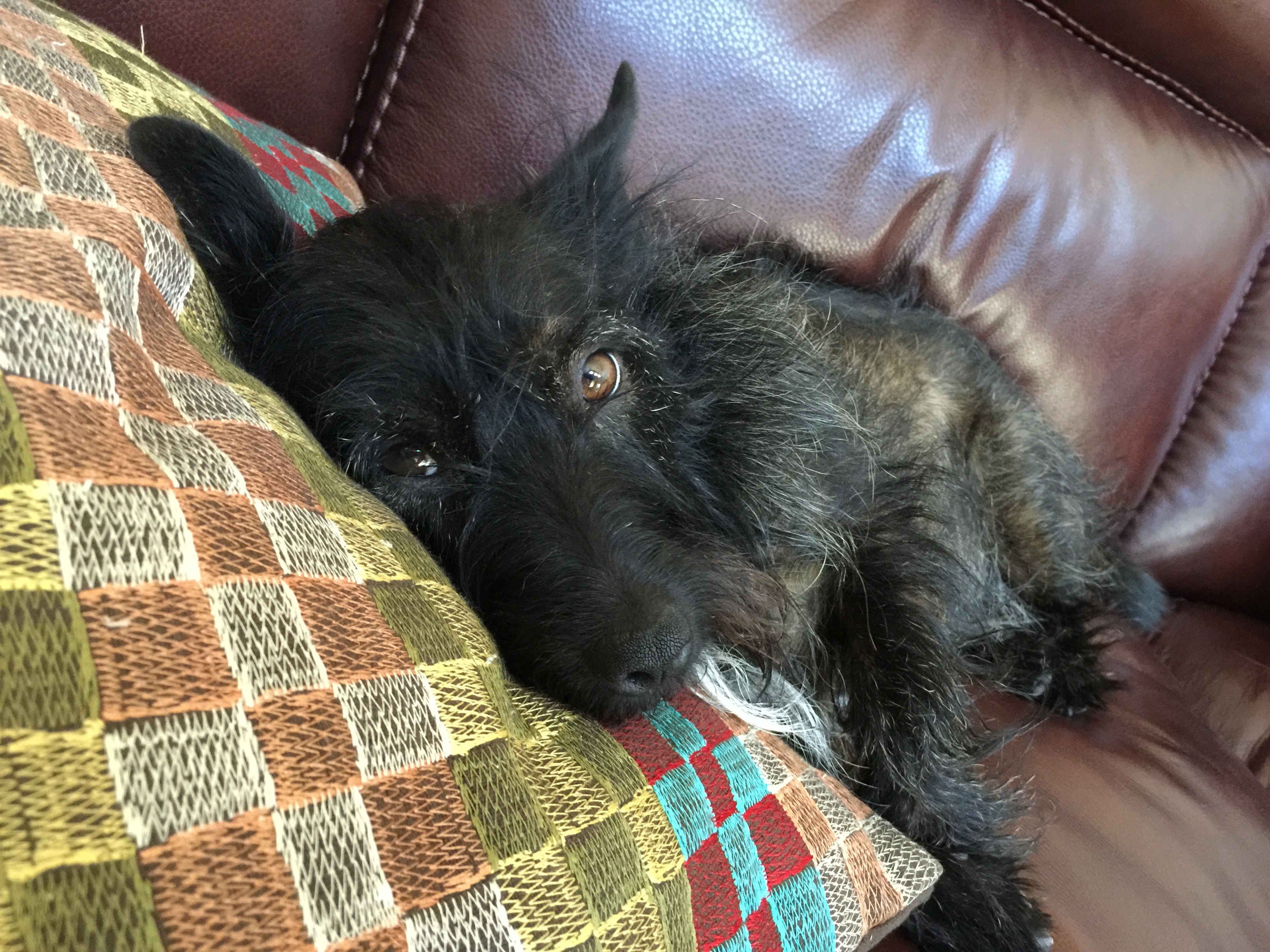 Pastel drawing of two dogs, a light tan dog and a black dog.