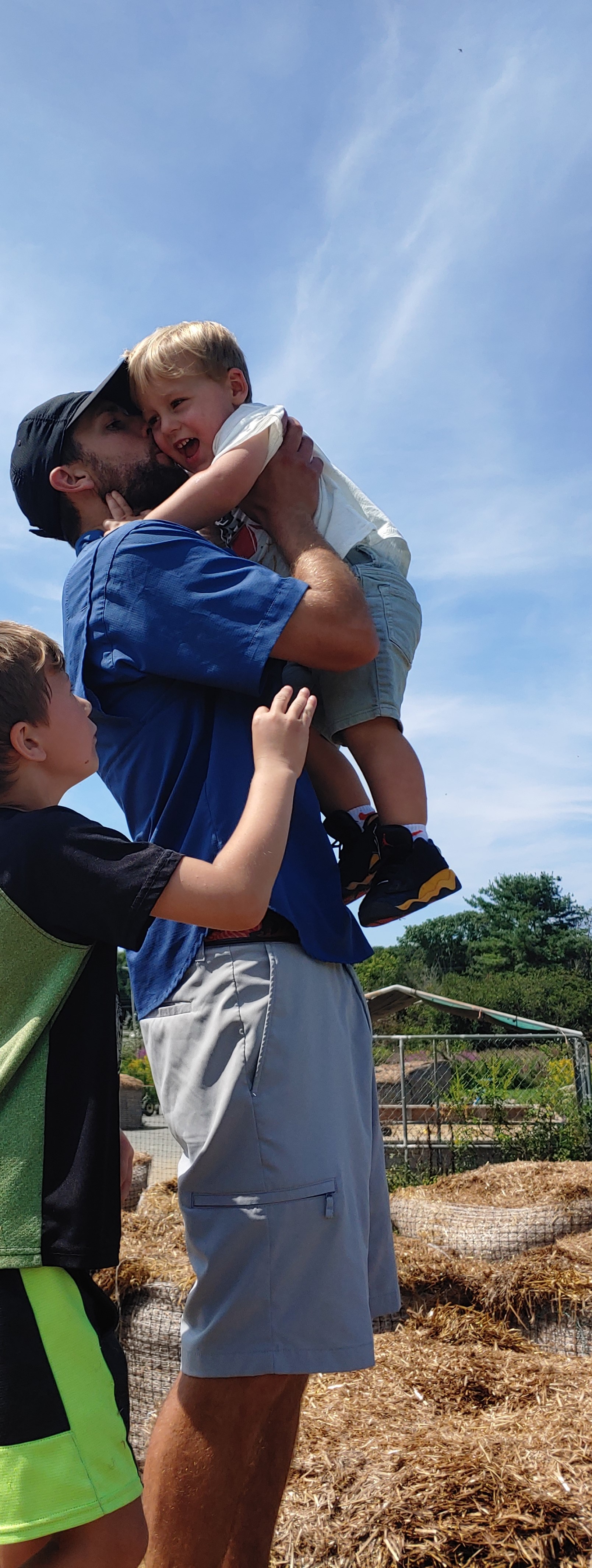 Painting of a father kissing his toddler son.