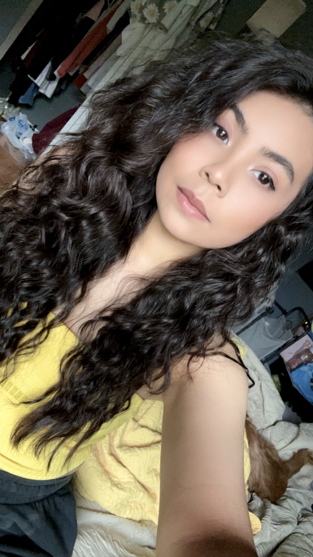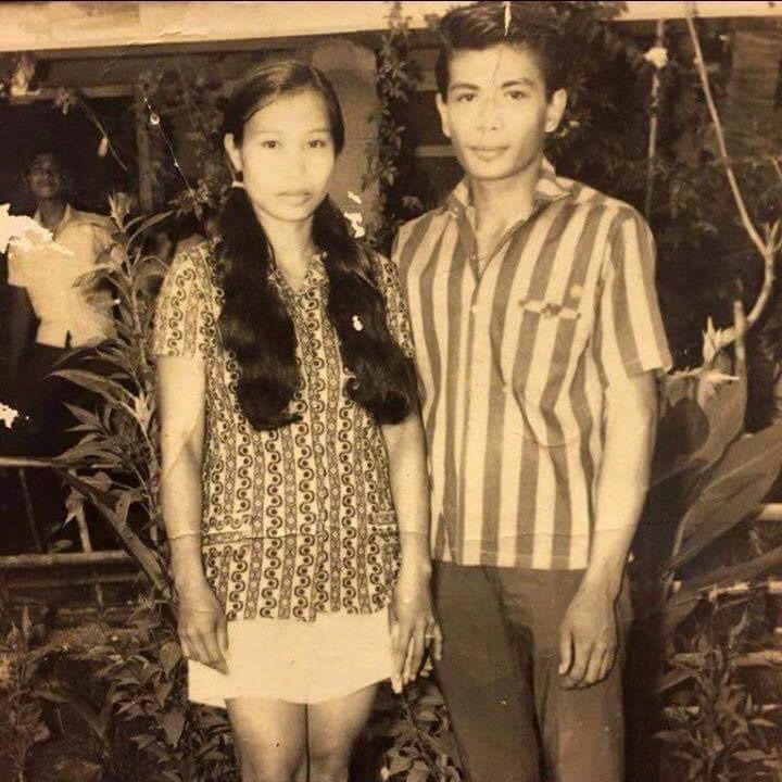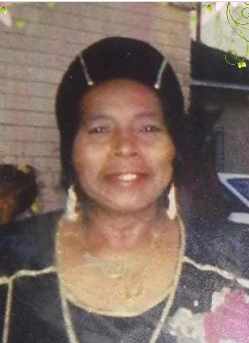 Pencil sketch of a smiling woman with dark hair and earrings.