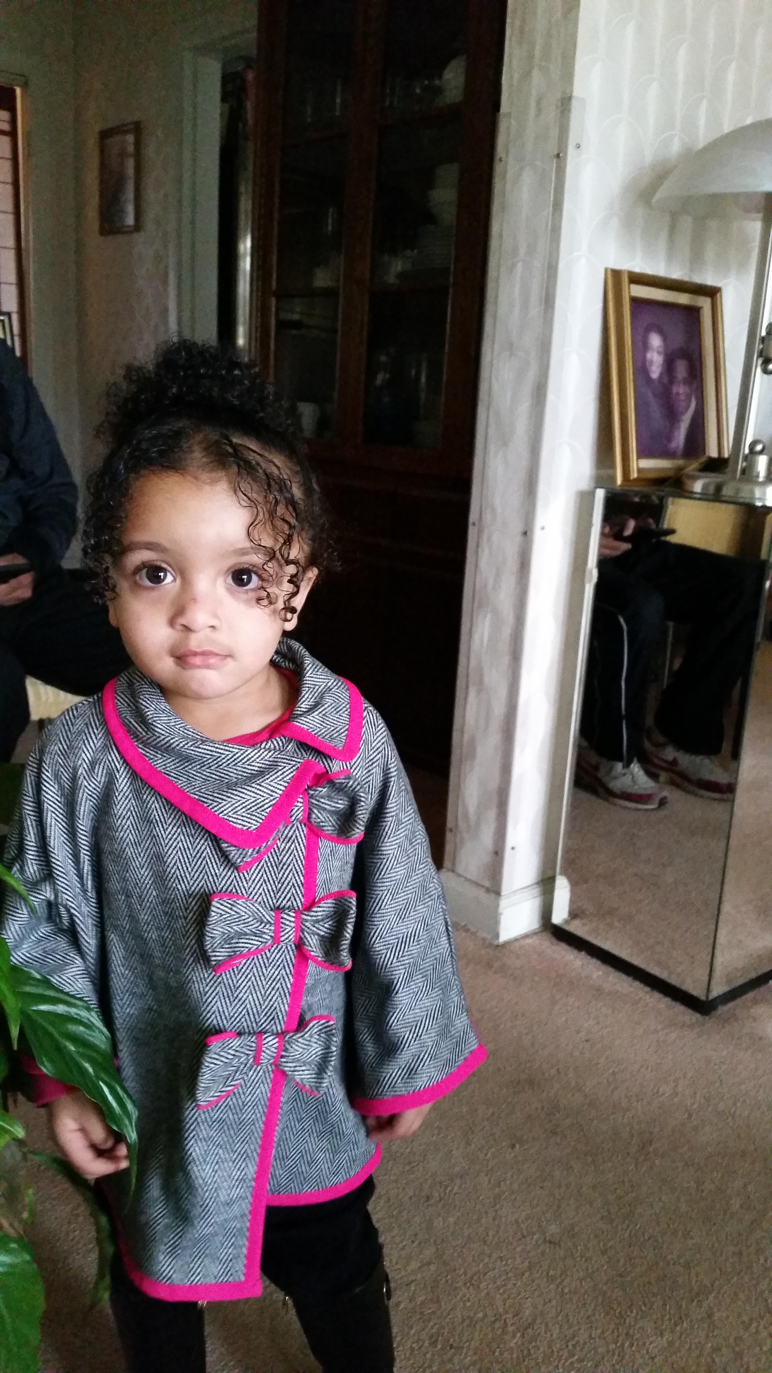 Black and white pencil sketch of a surprised young girl with curly hair.