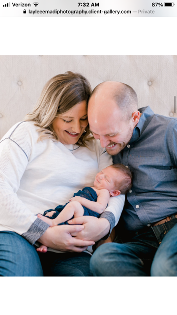 Black and white drawing of a family: a mother, father, and newborn baby.