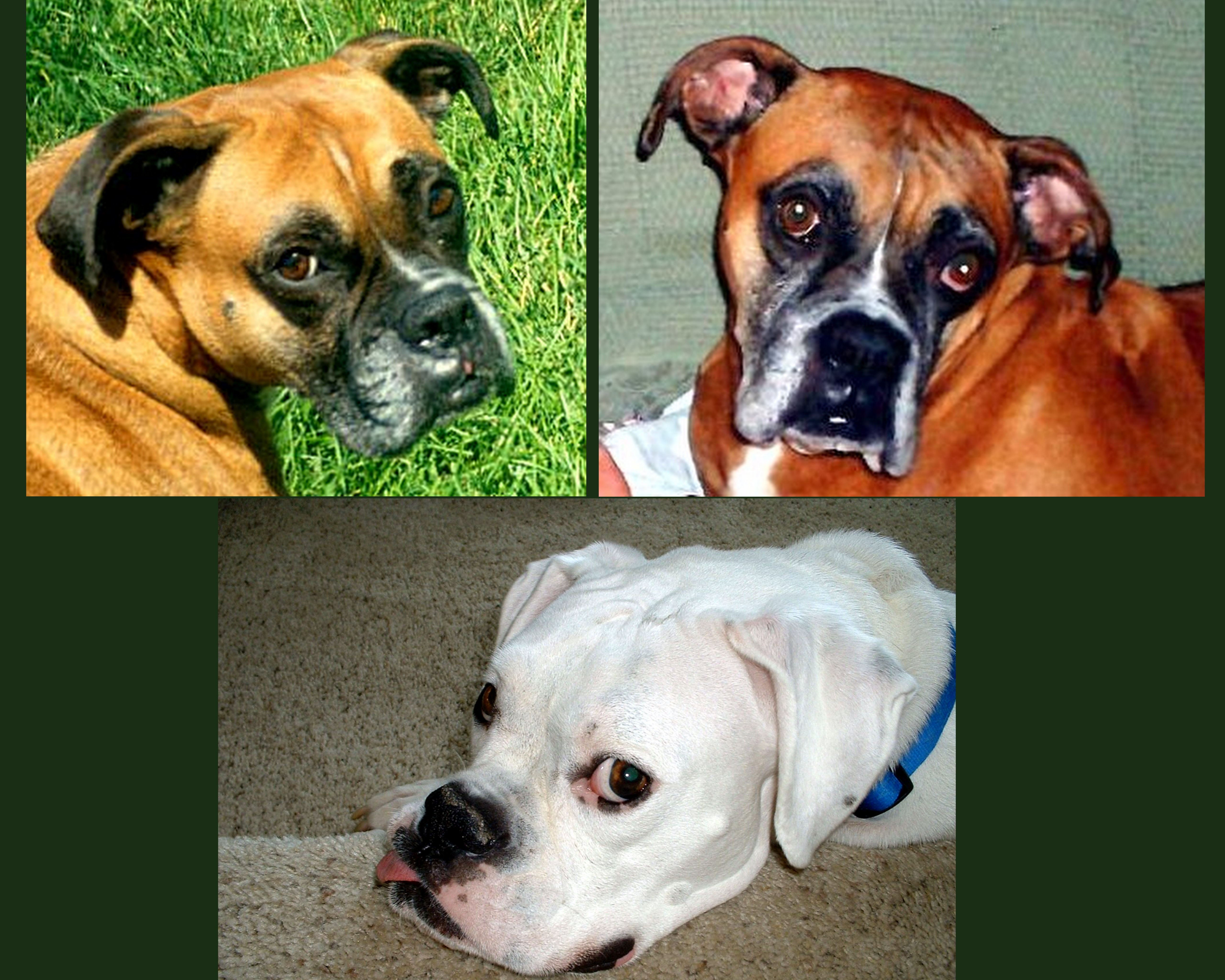 Painting of three boxer dogs, Lucy, Joe B., and Sparkle.