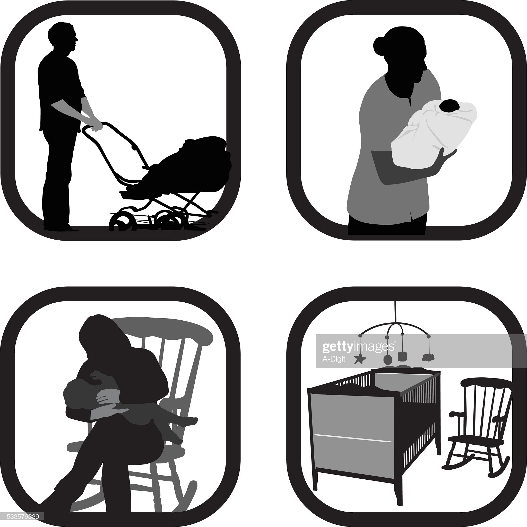 Pencil sketch of a mother and her six children.