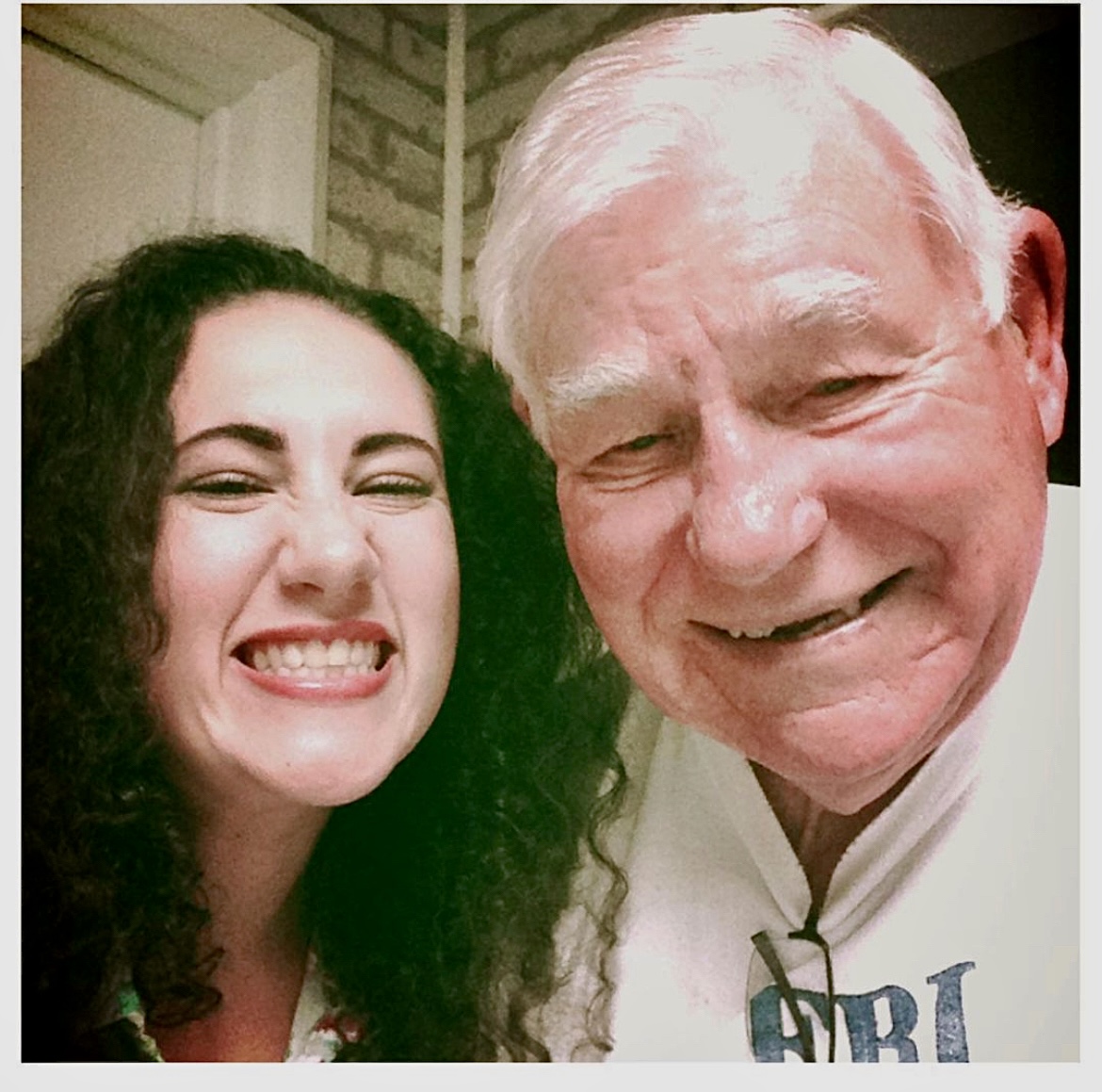 Painting of a smiling young woman and older man.