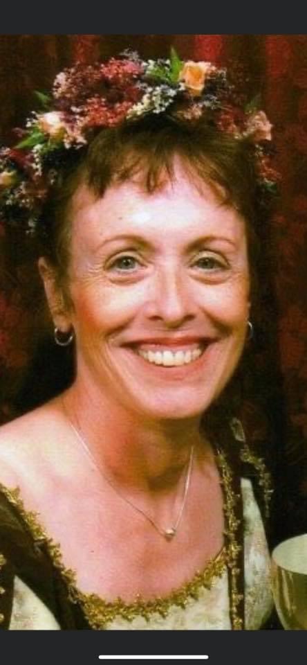 Oil painting portrait of three women, one wearing a flower crown.