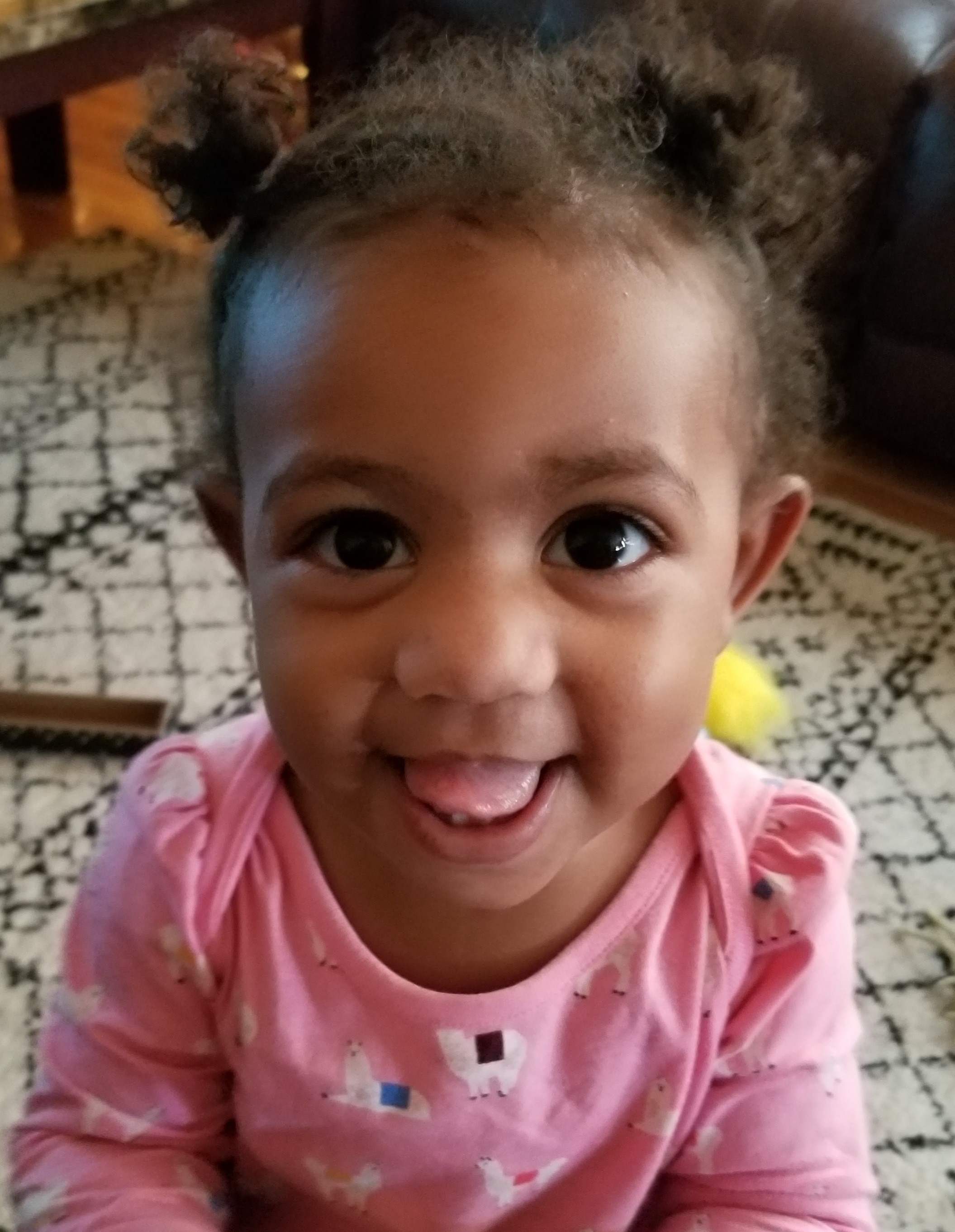 Painting of three Black women, two adults and a toddler, sticking their tongues out.