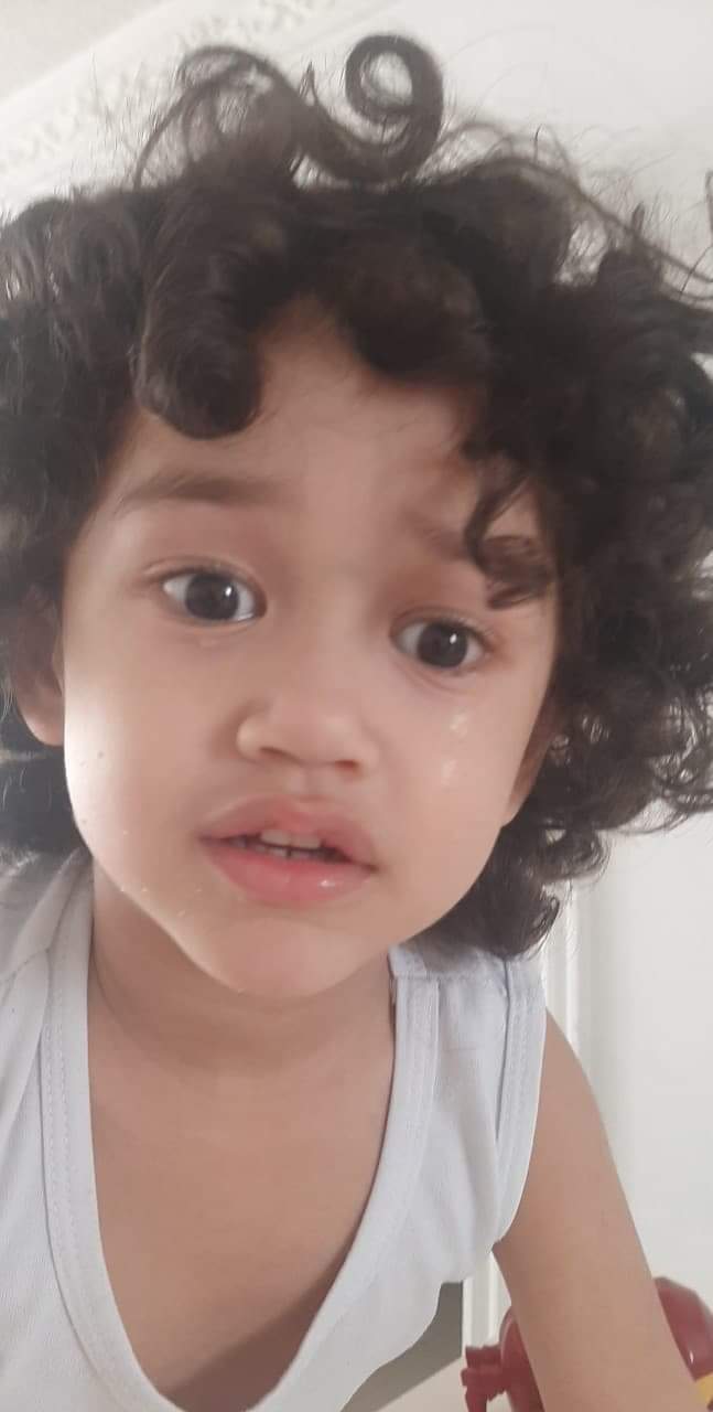 Portrait of a young woman with bantu knots, a nose ring, and hoop earrings, against a red background, she is touching her mouth with a slightly annoyed expression.