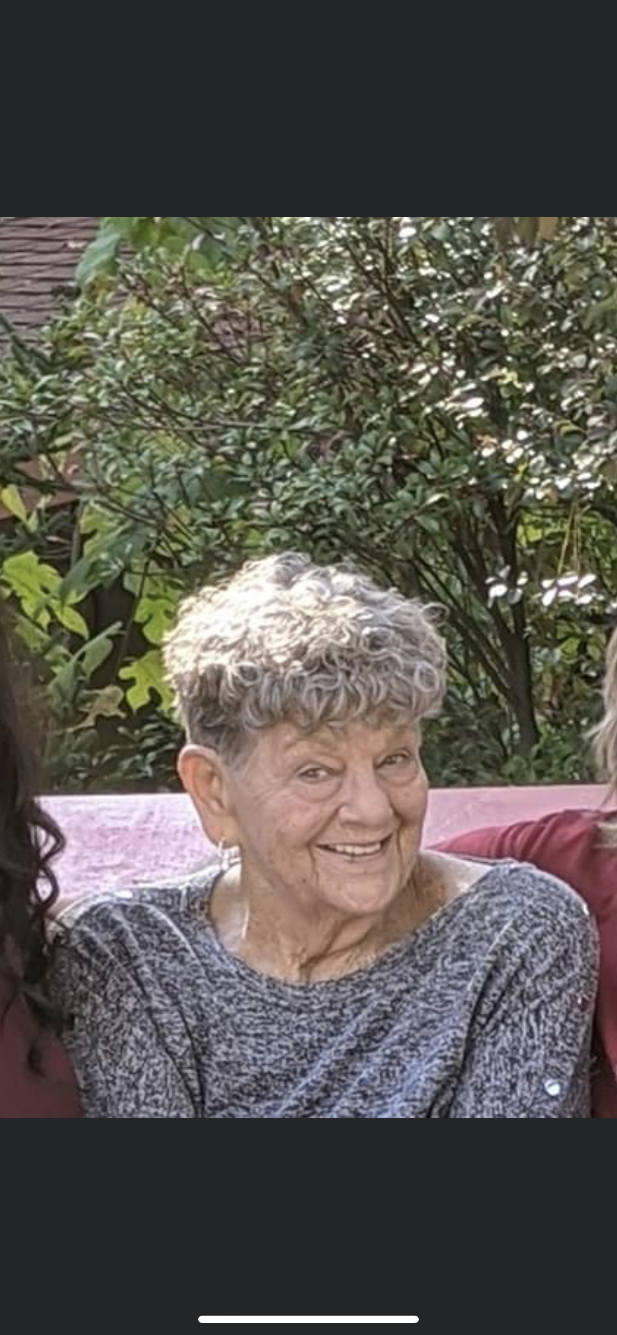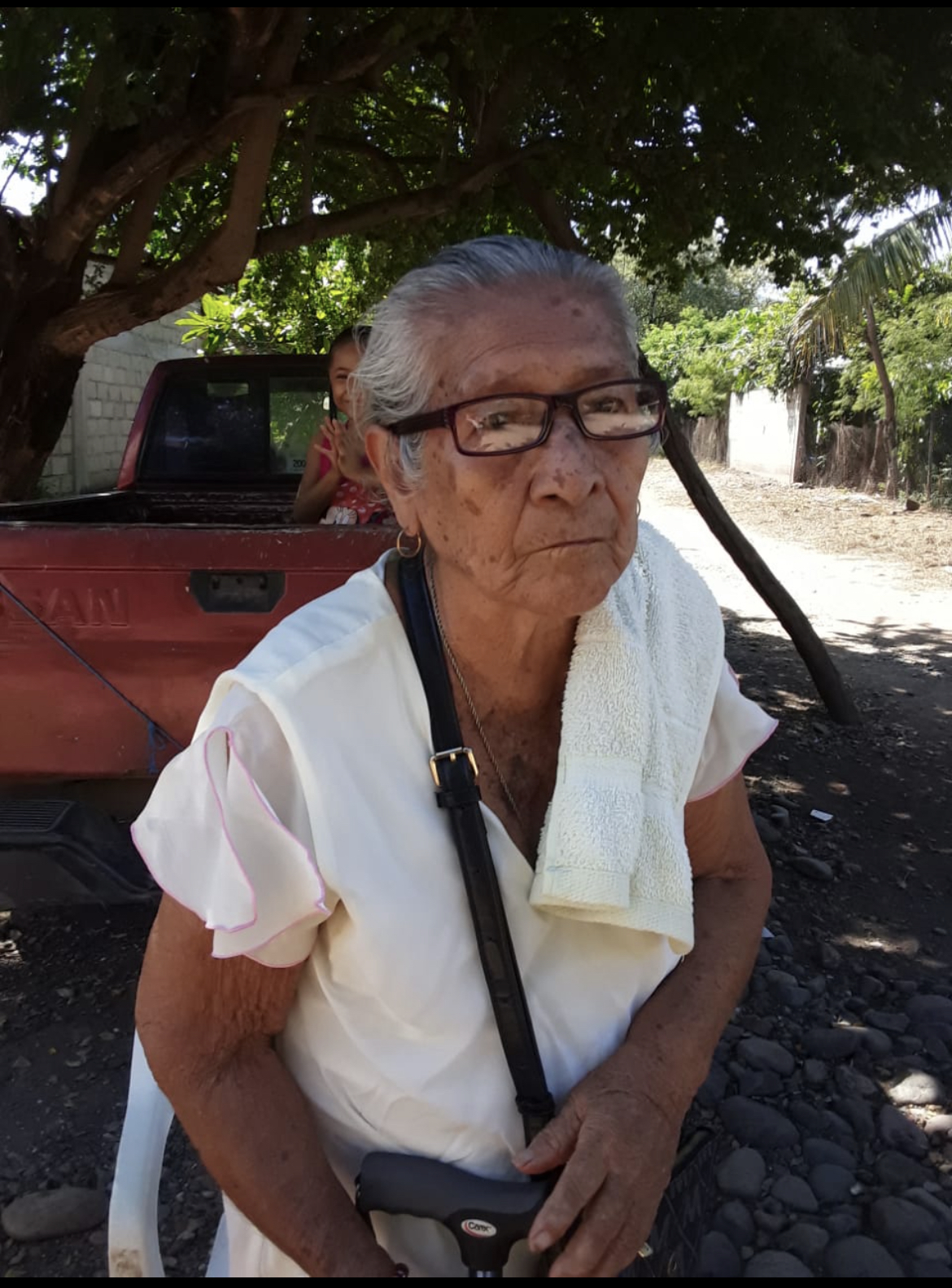 Painted portrait of an elderly woman and a younger woman against a blue background.