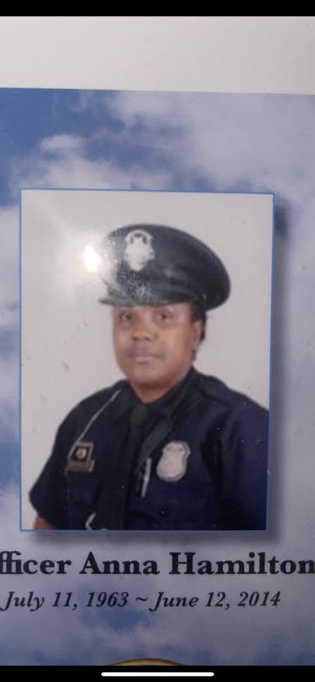 Painting of three Black women: one in a pink dress, one in a police uniform, and one in a graduation cap and gown.