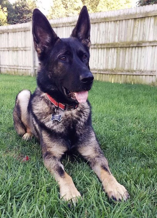 Watercolor portrait of a brindle mastiff with its tongue out.