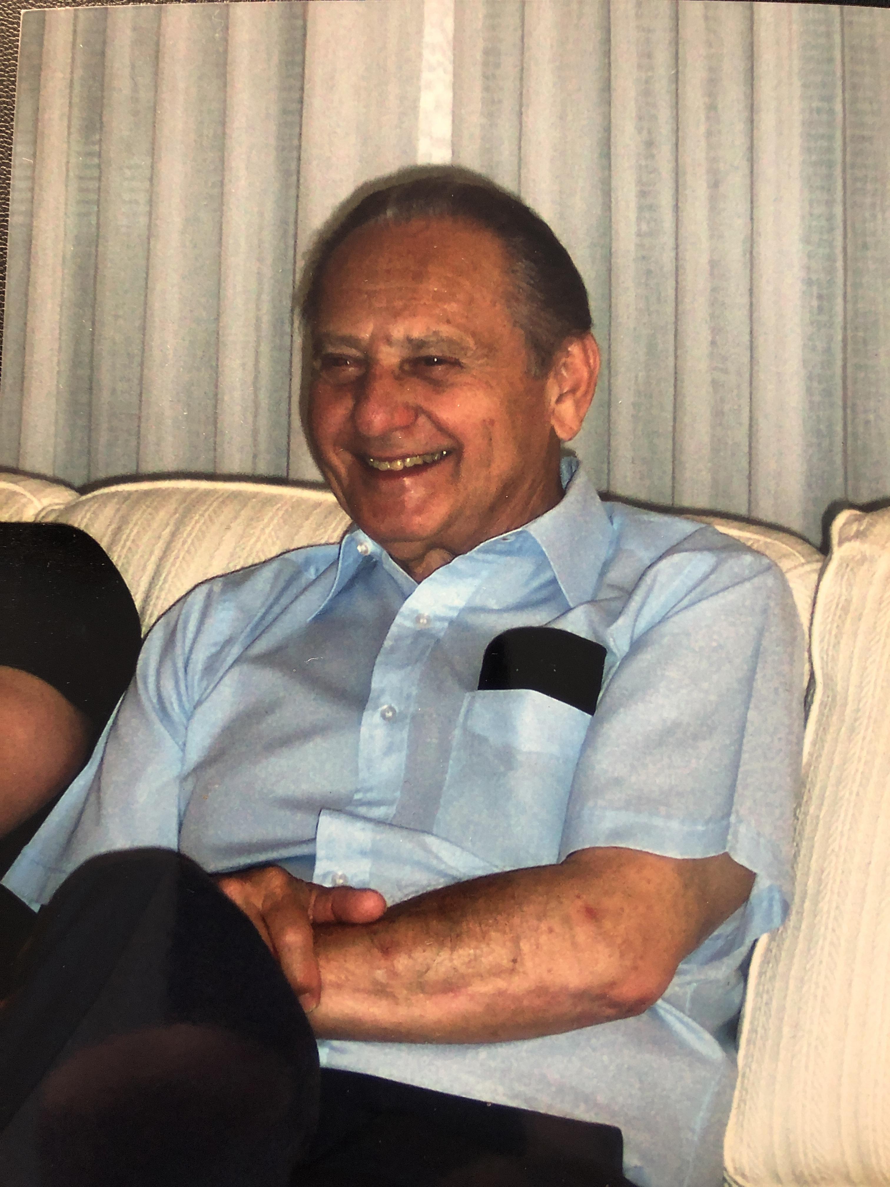 Painting of a couple, both with yellow food items in their mouths, smiling at the camera.