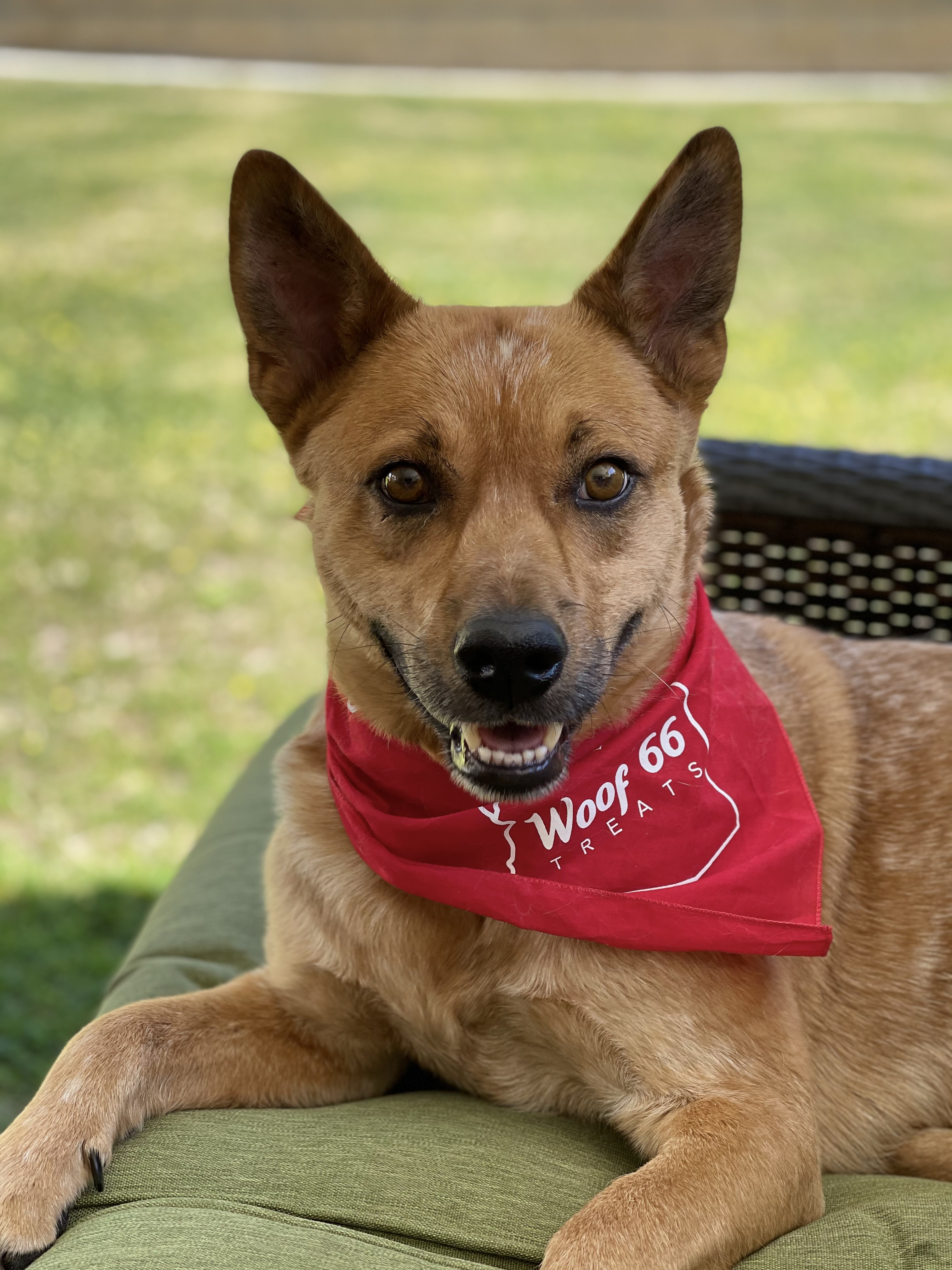 Painting of three dogs, two corgis and one dog wearing a red bandana.