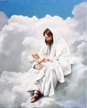 Painting of a mother holding her newborn baby.