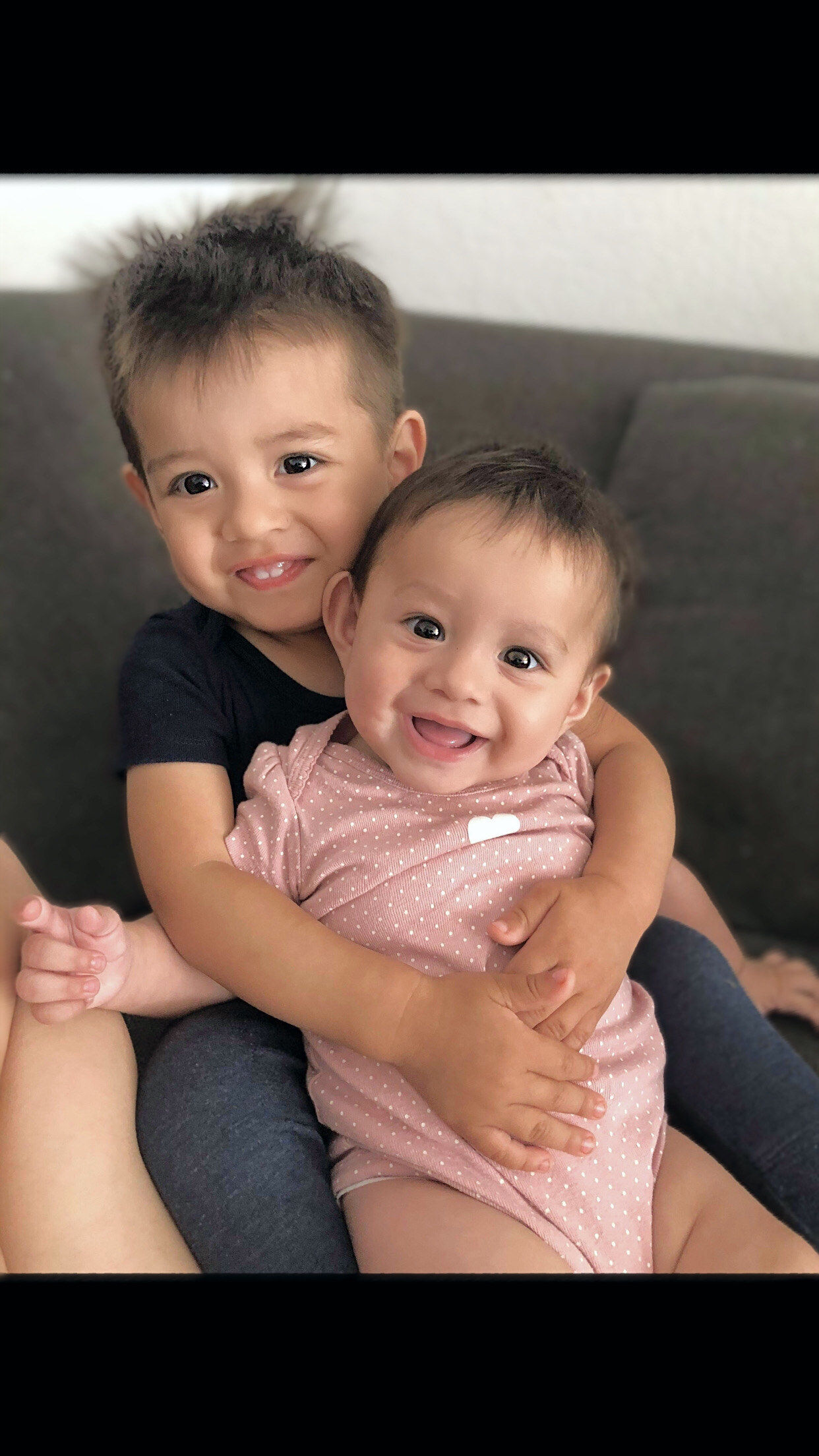 Painting of two young children hugging