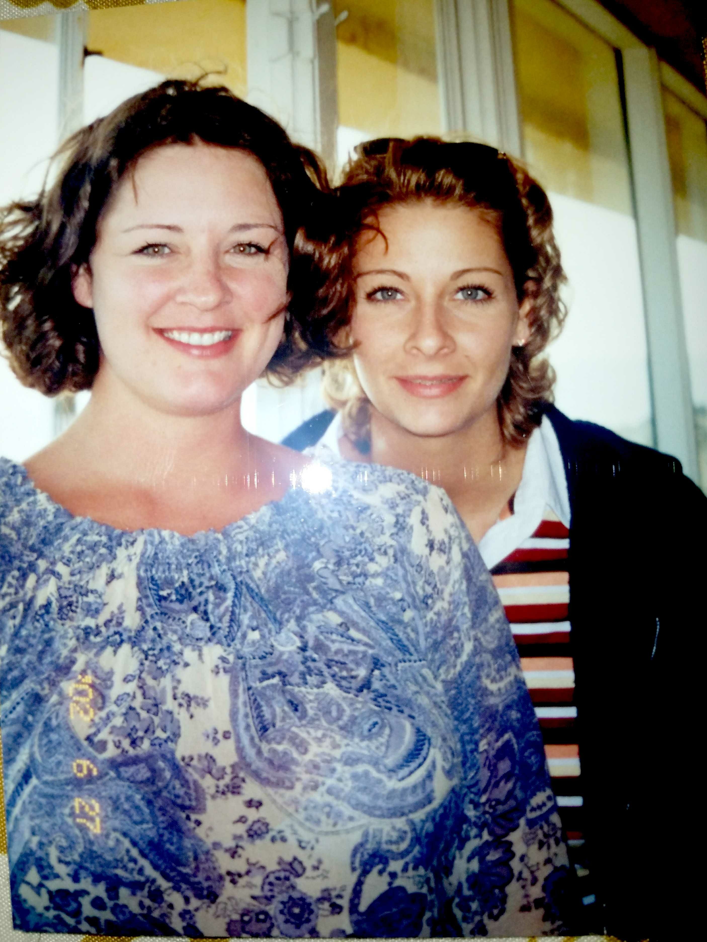 Painting of two women, shoulder to shoulder.