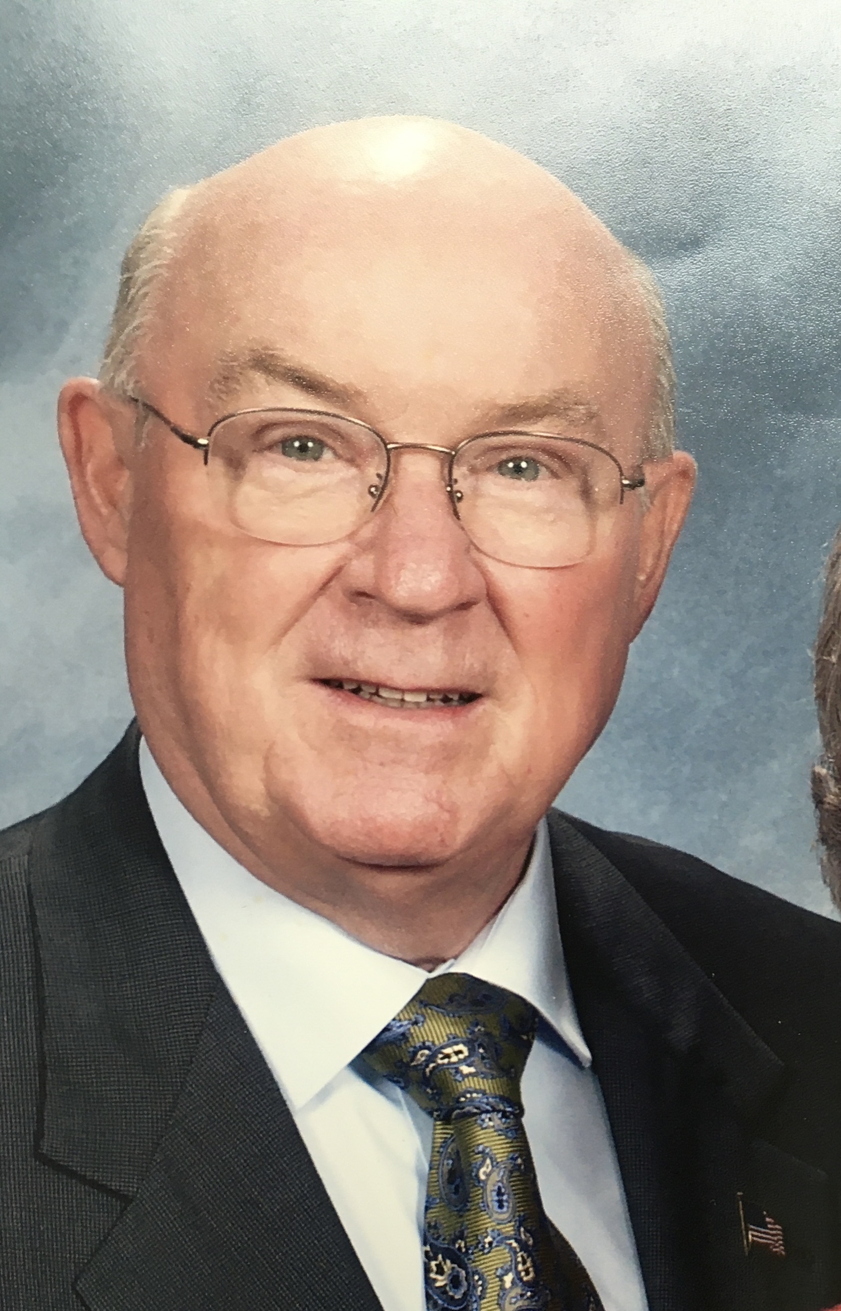 Painting of a deceased man in the upper portion, and his eight grandchildren on a beach in the lower portion.