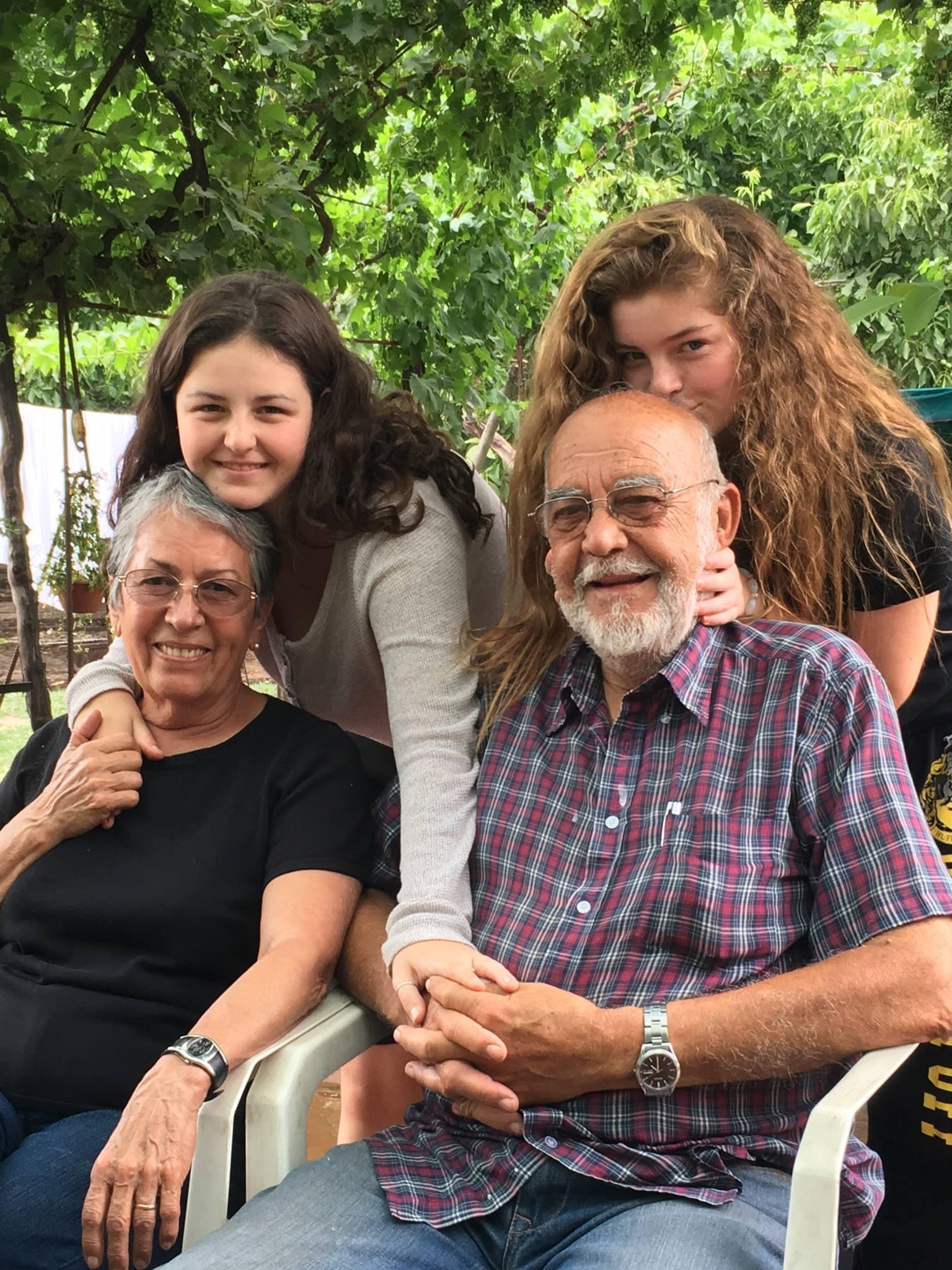 Painted portrait of grandparents with two grandchildren.
