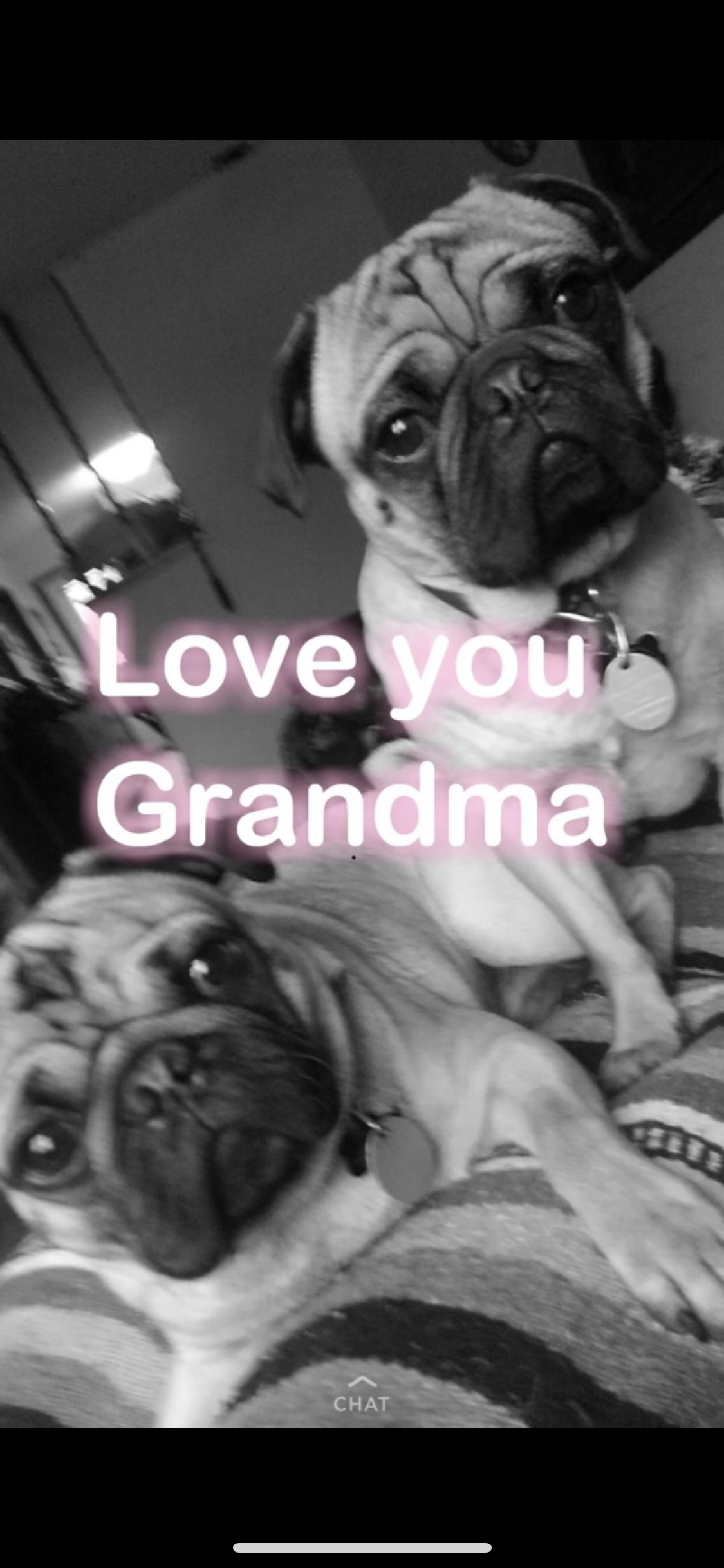 Black and white painting of two pugs.