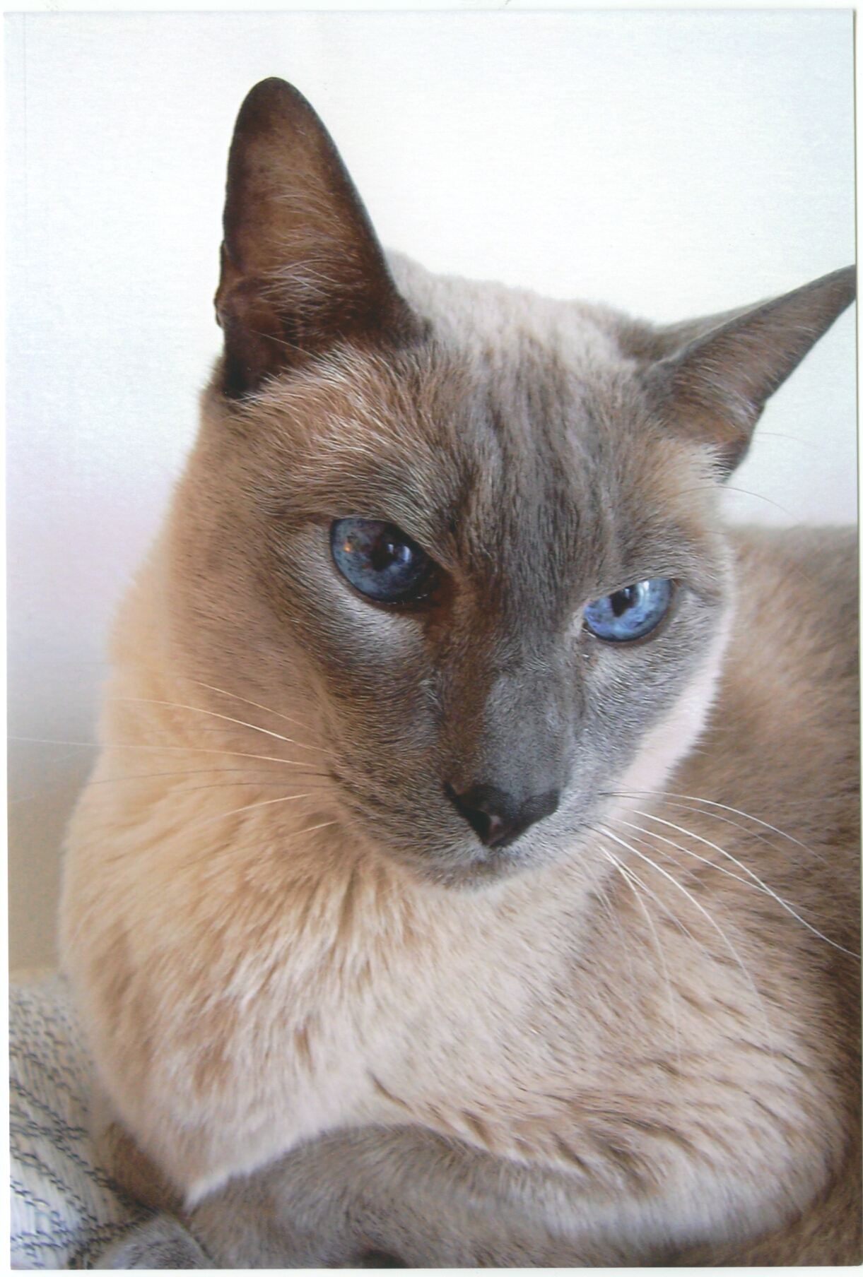 Painting of a Siamese cat with blue eyes.