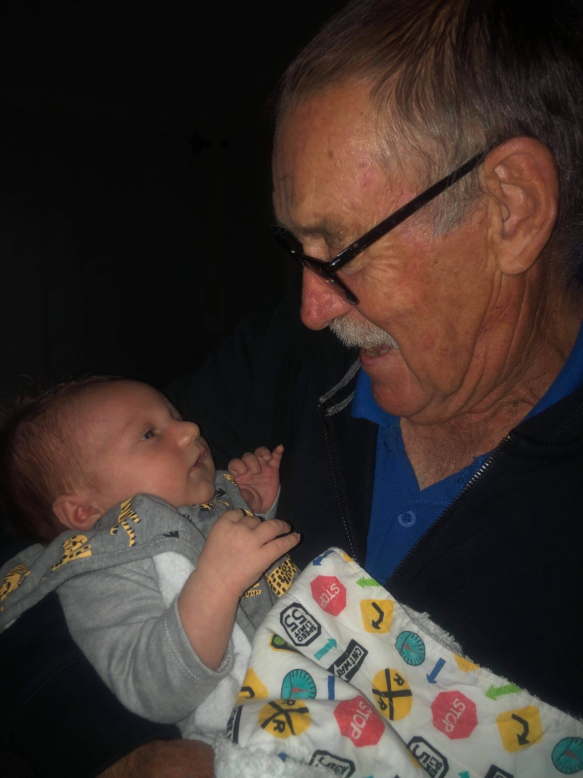 Painting of an older man holding a baby.