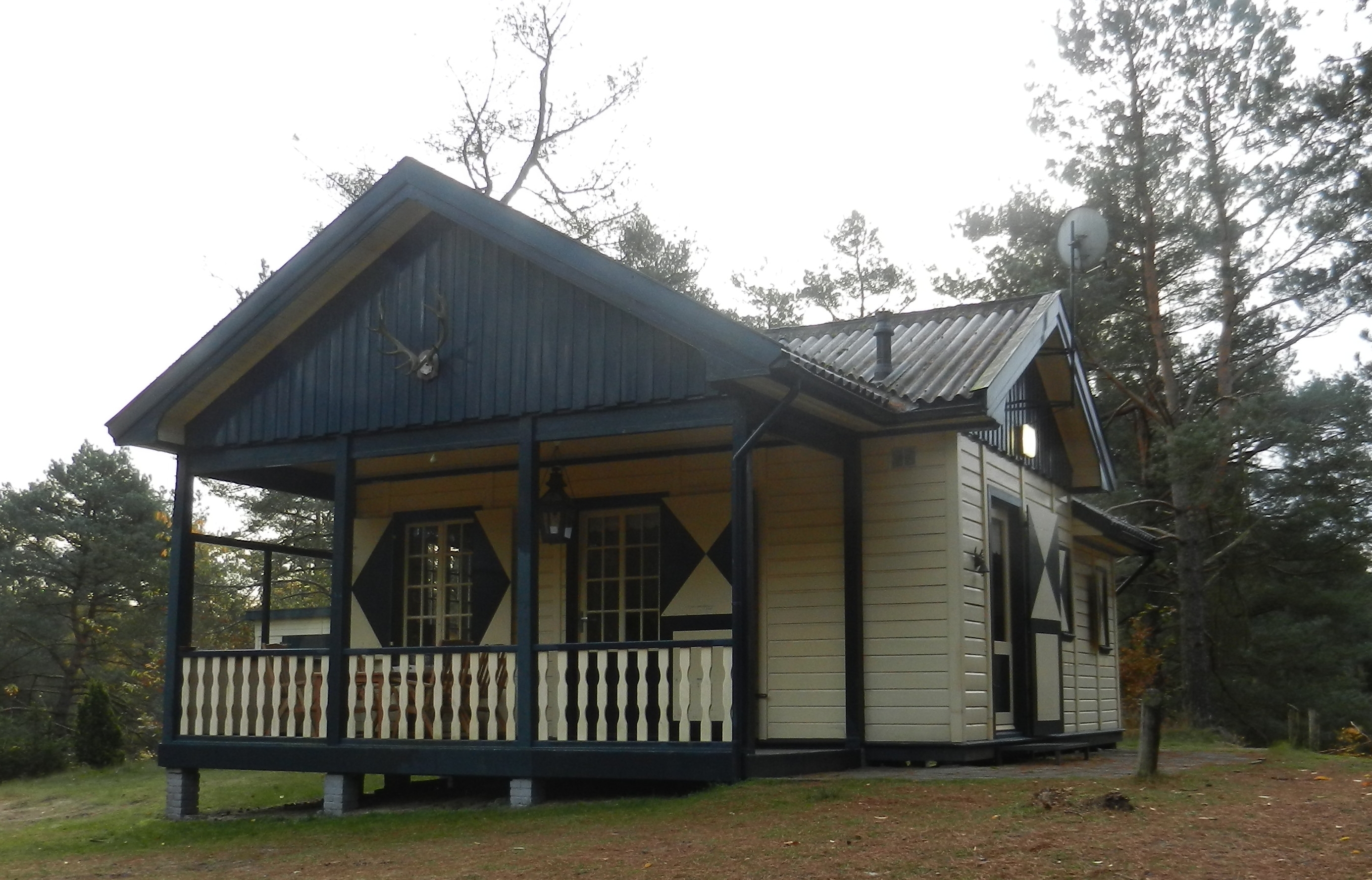 Painting of a small house with a wraparound porch and a satellite dish on the roof.
