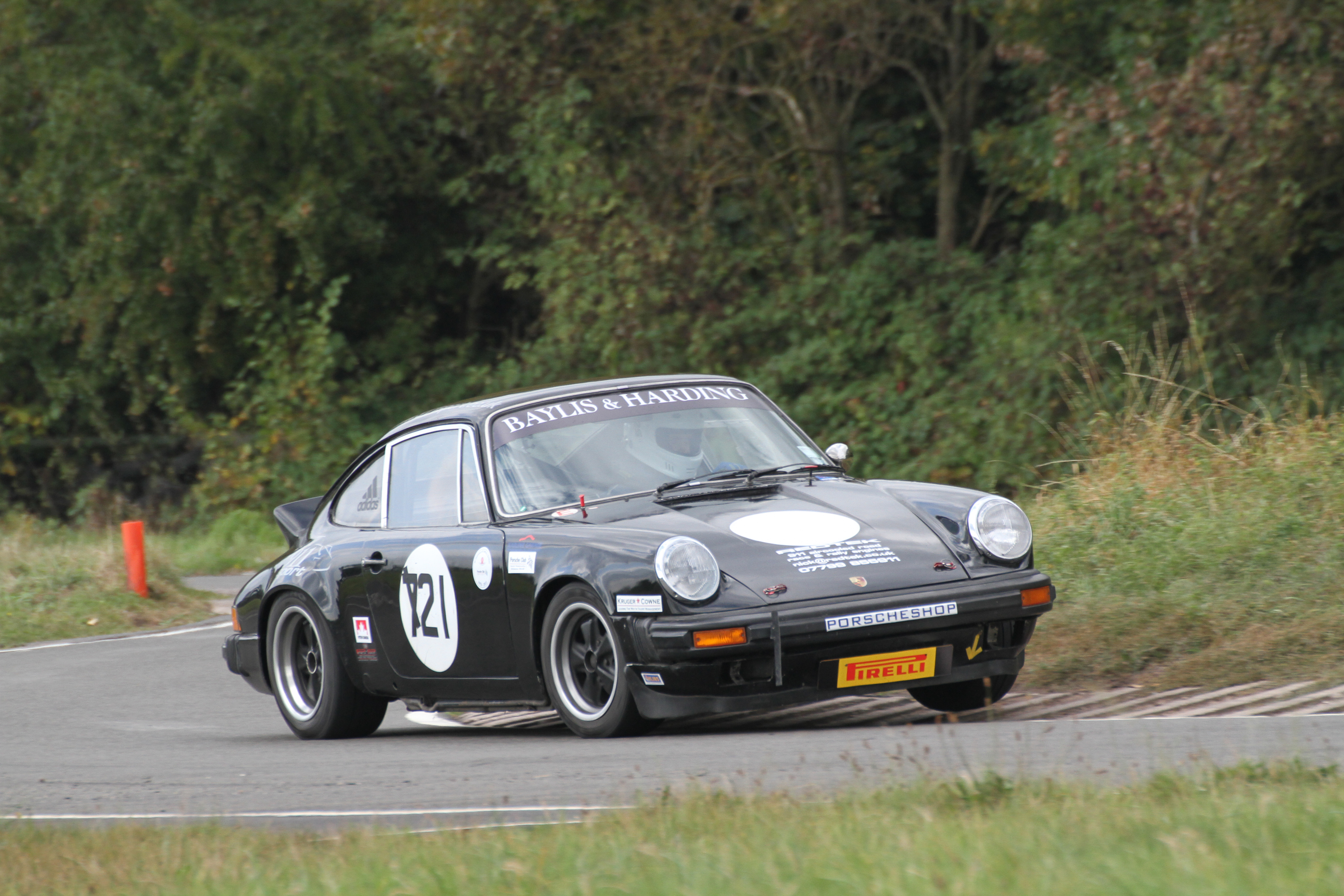 Painting of a black Porsche 911 race car, number 121, driving on a road.