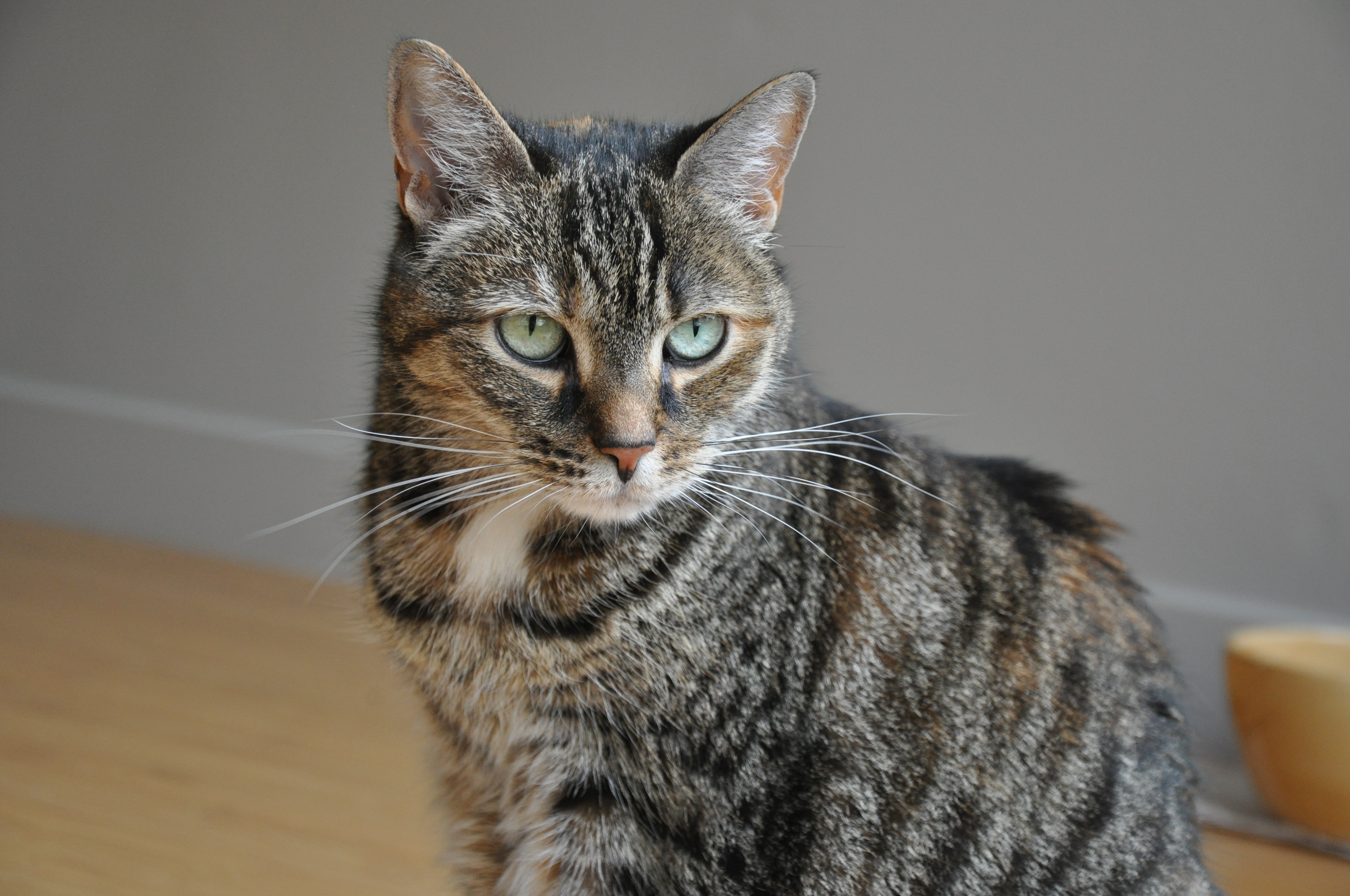 Painting of a tabby cat with blue eyes