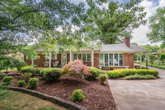 Watercolor painting of a brick ranch house with landscaping and driveway.