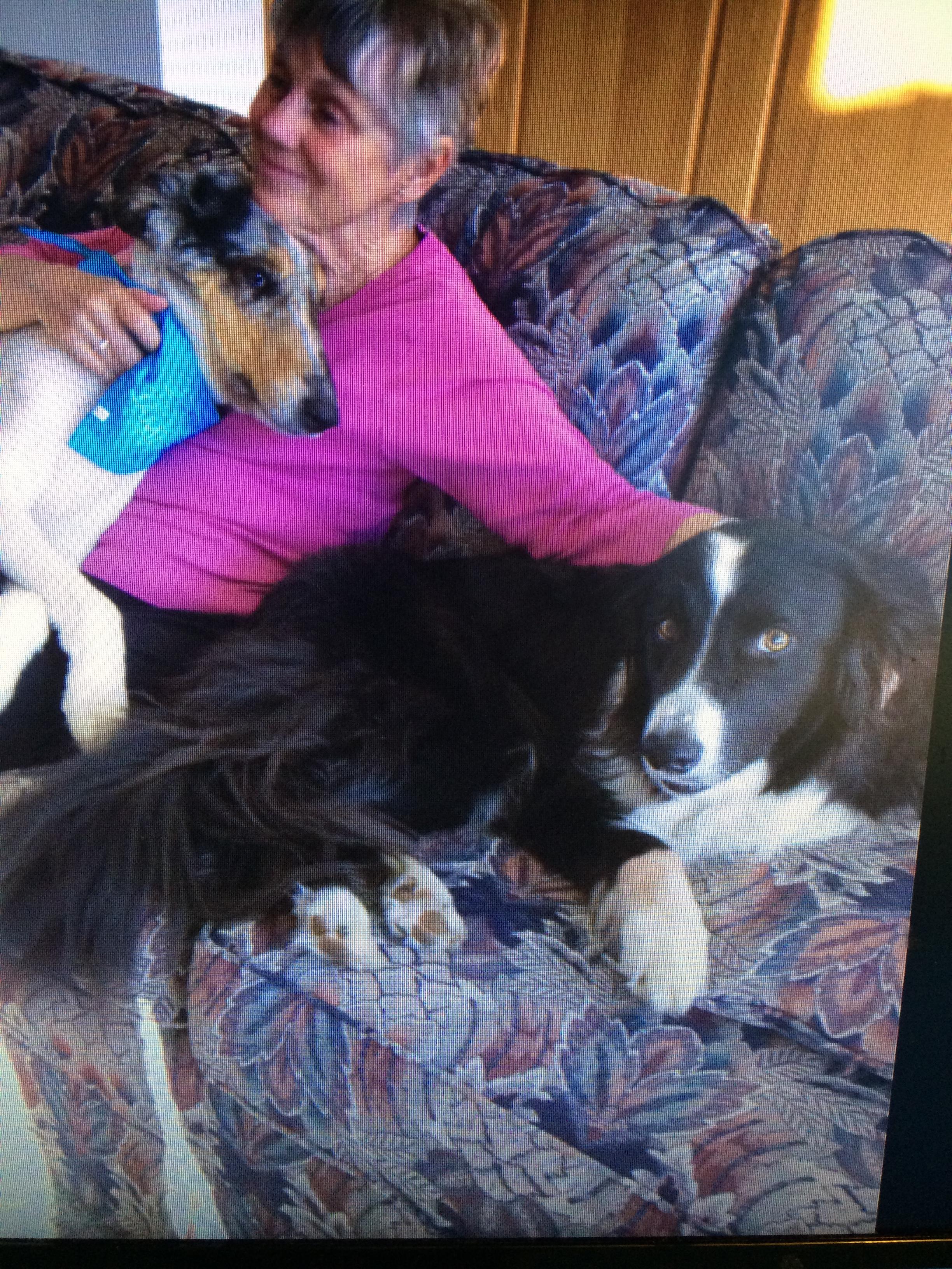 Black and white portrait of a boy and his Collie dog lying in the grass.