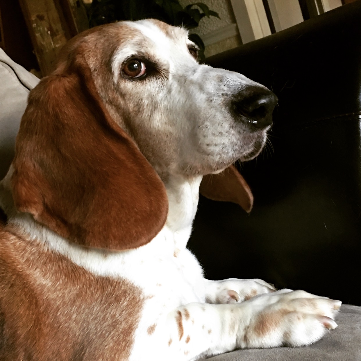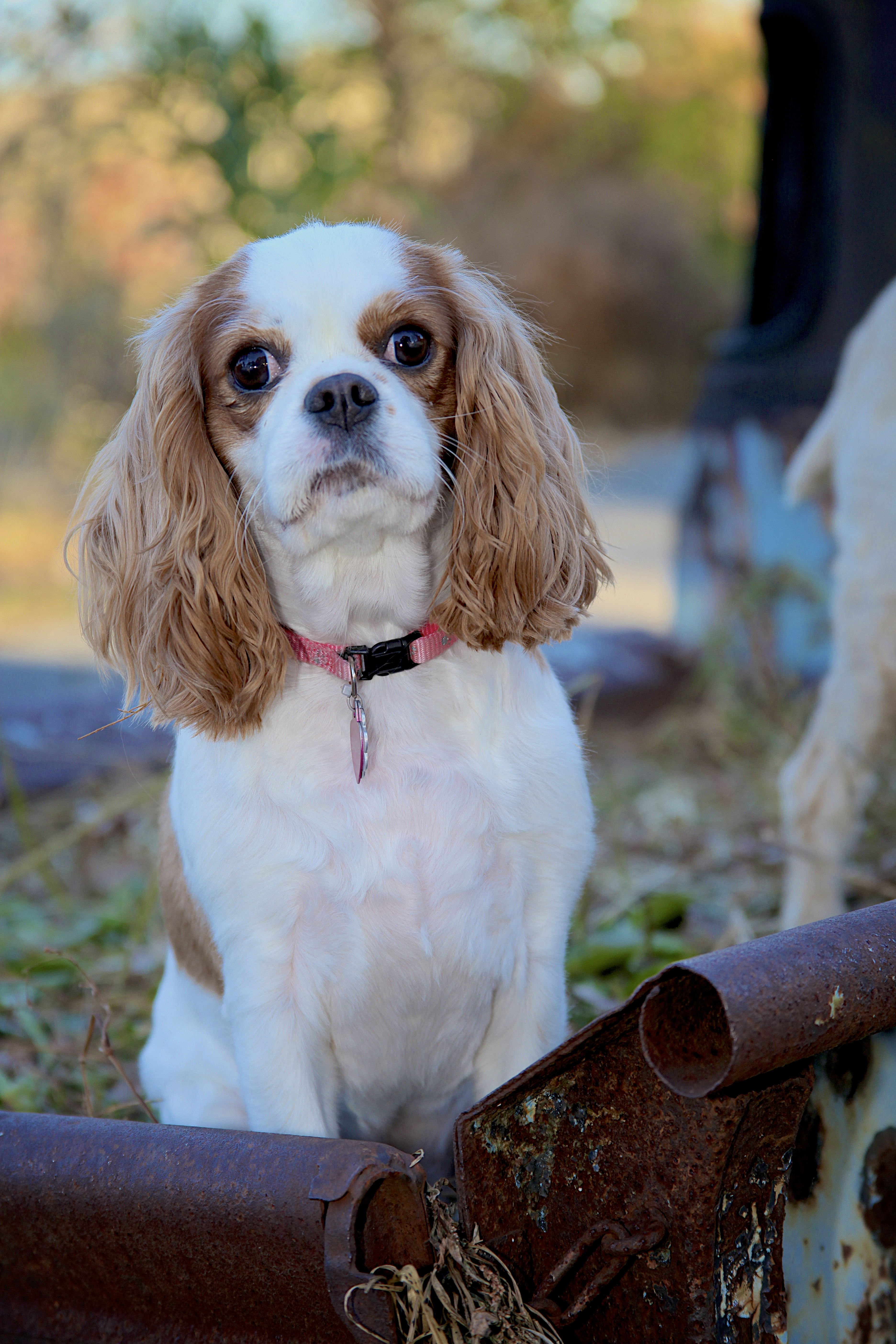 Painting of two dogs, a cream-colored dog and a Cavalier King Charles Spaniel.