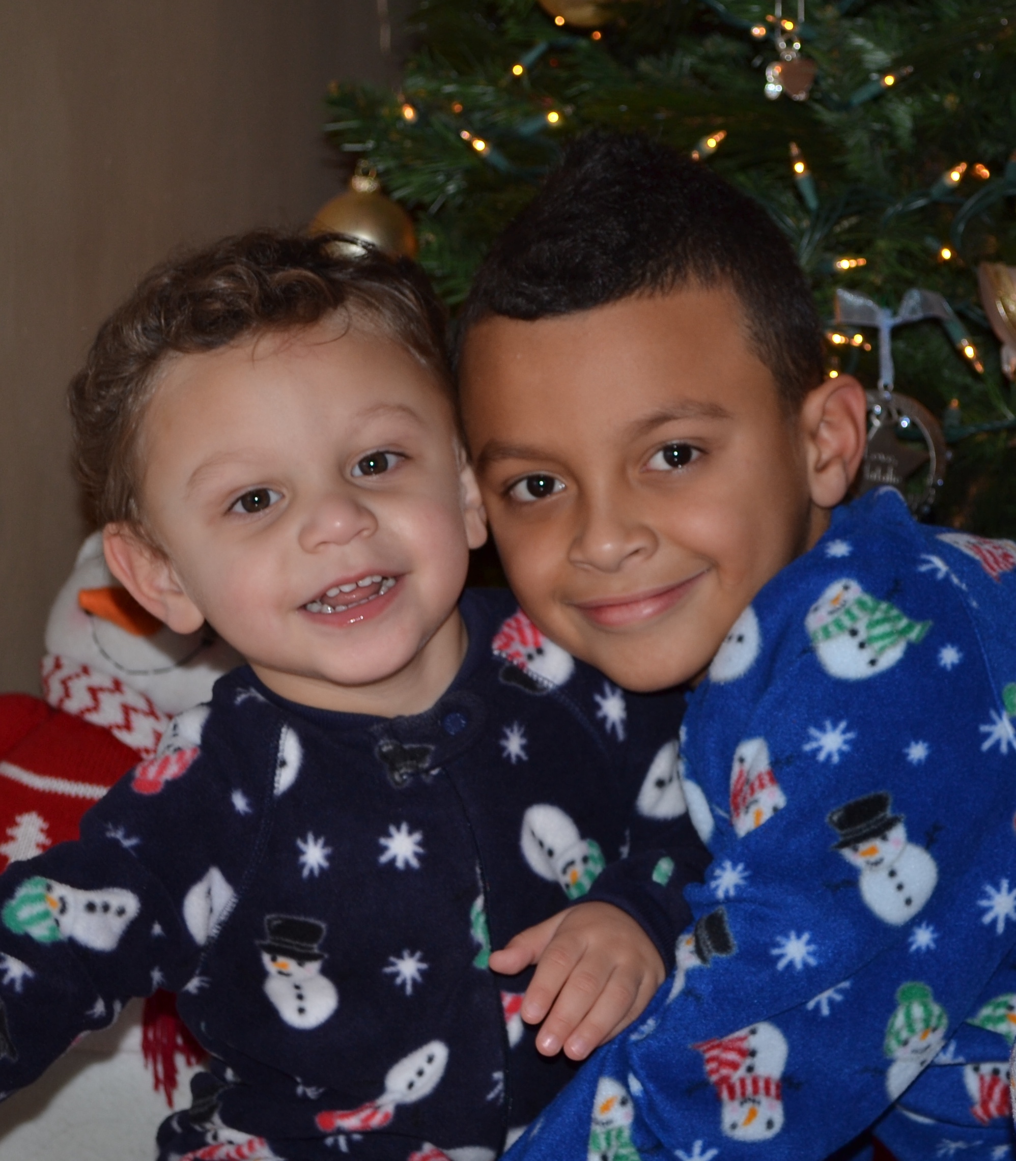 Painting of two young brothers embracing.