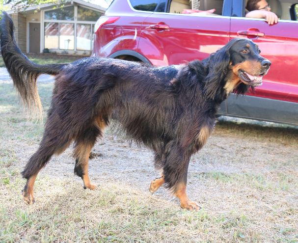 Painting of a blue-black dog walking