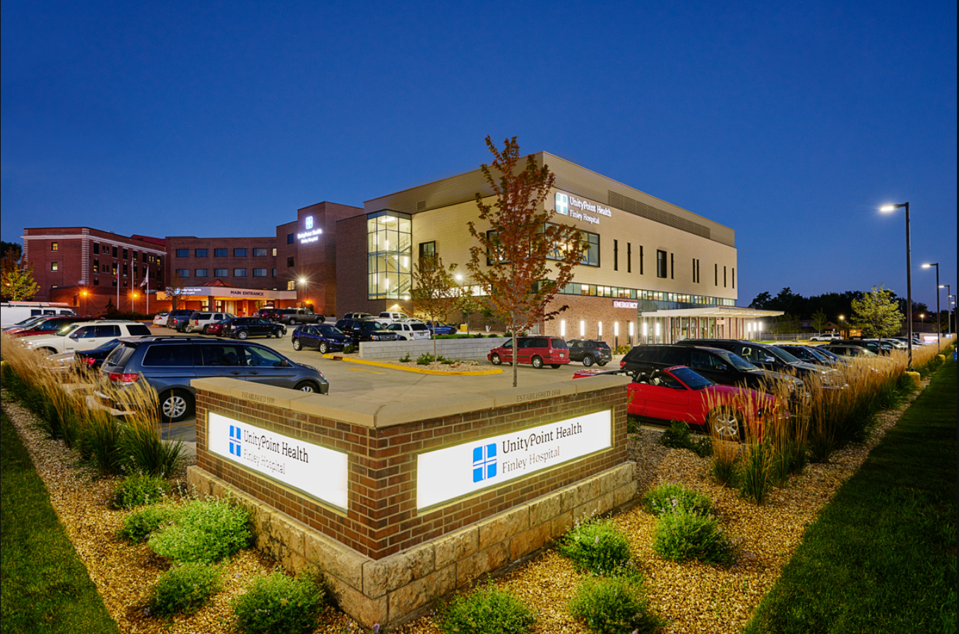 Watercolor painting of Finley Hospital, UnityPoint Health.